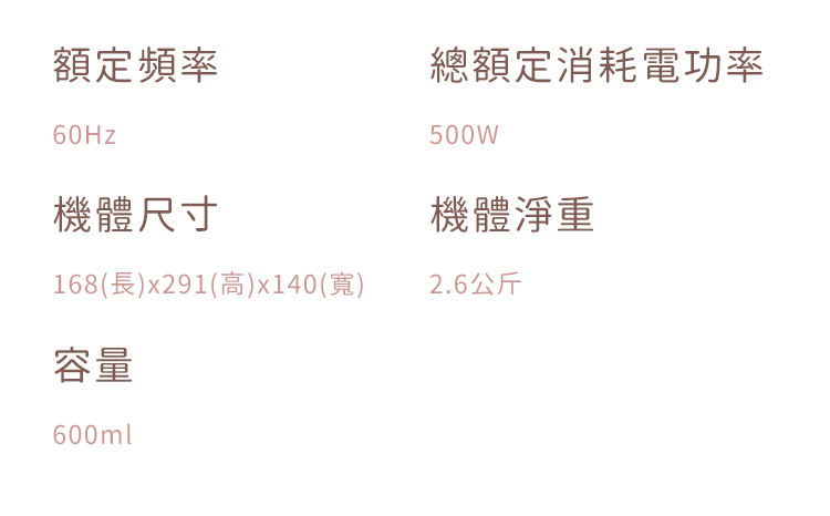 配件:主機*1/調理機*1/量杯*1/清潔刷*1/電源線*1