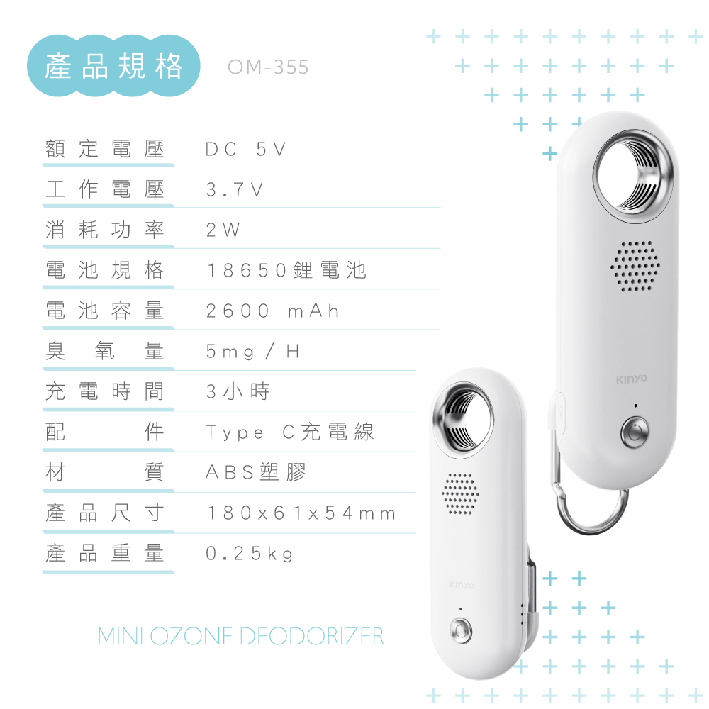 內含:【KINYO】無線光控臭氧除味器OM-355