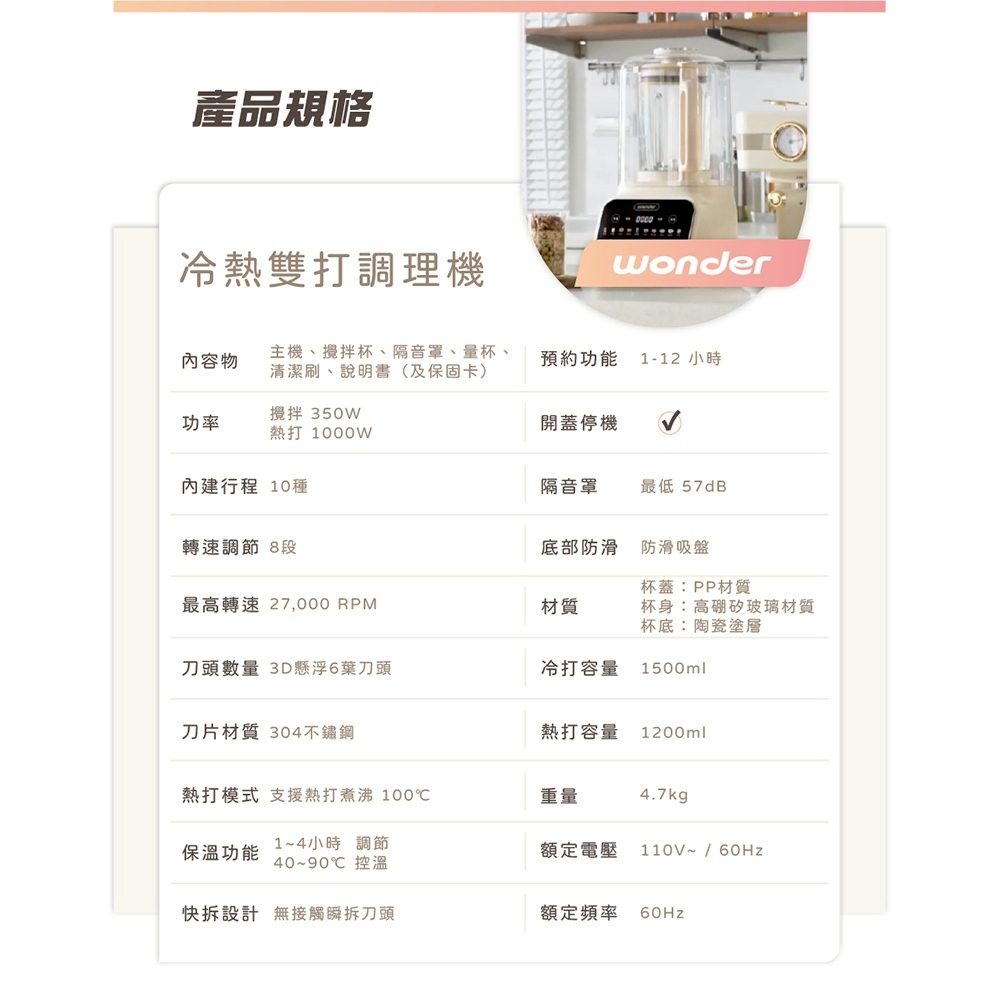 內含:【WONDER】可拆刀片萬用加熱型調理機