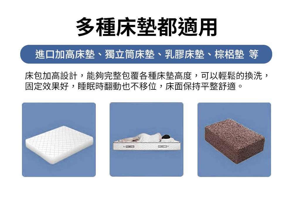 .加大床包:6 x 6.2呎 ∕ 180 x 186 公分 (可包覆床墊高度 35 公分以內)