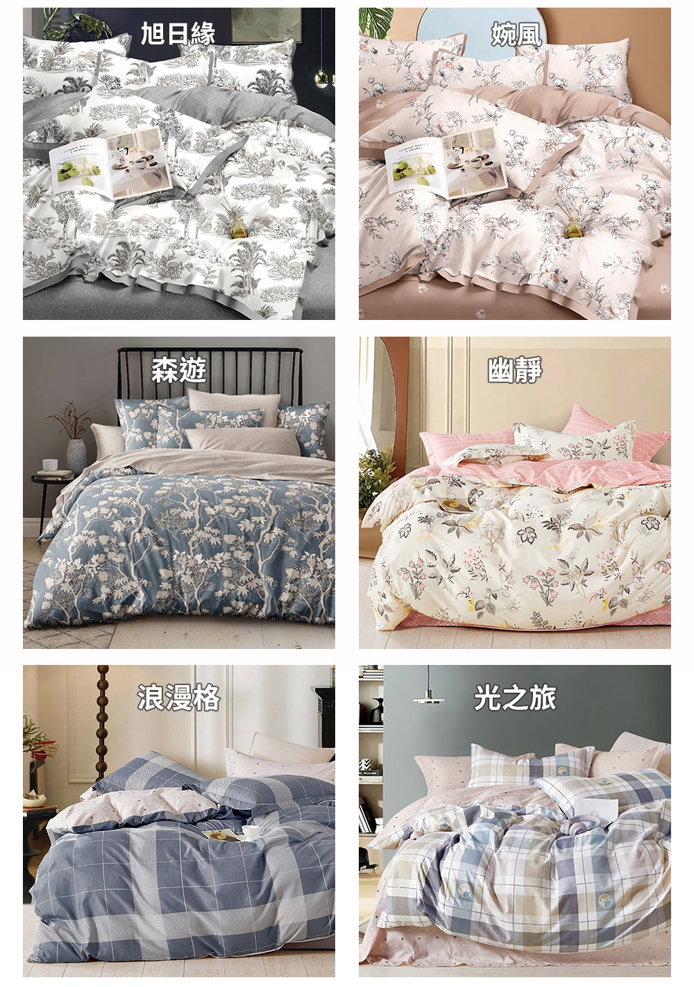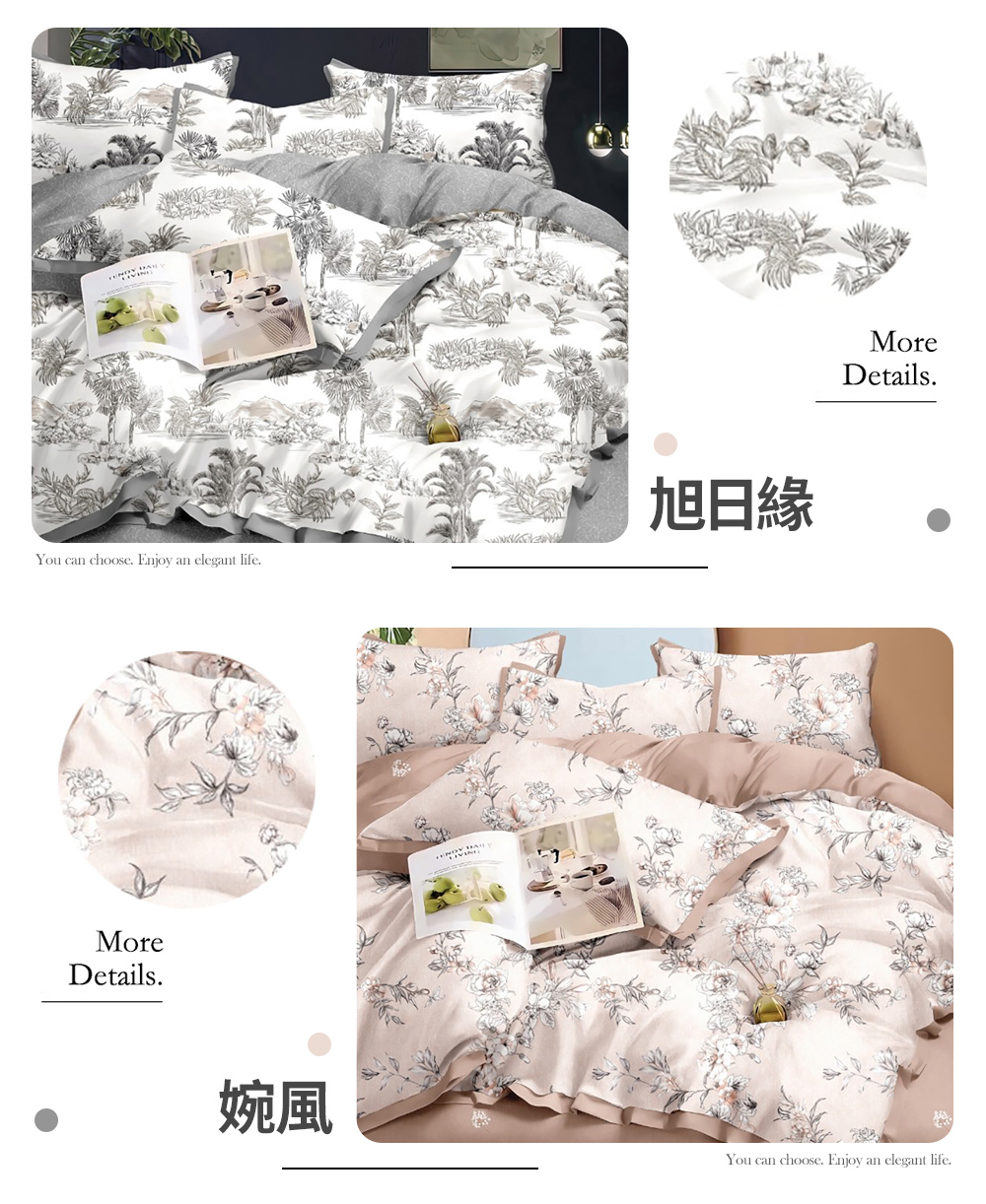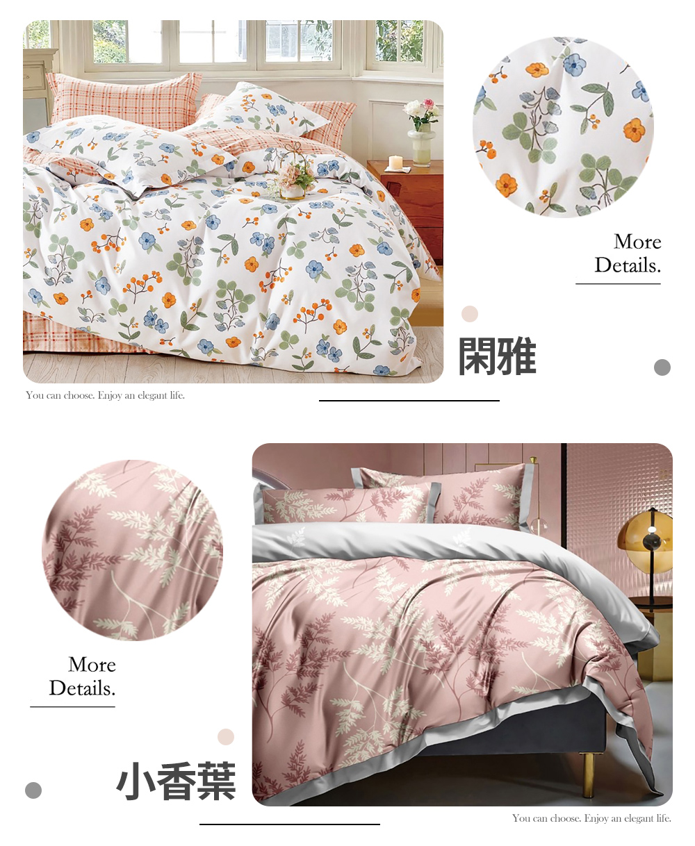 配件: 單人 床包 x 1 + 薄被套 x 1 + 美式信封枕套 x 1 ∕ 1組 ,雙人或加大 床包 x 1 + 薄被套 x 1 + 美式信封枕套 x 2 ∕ 1組