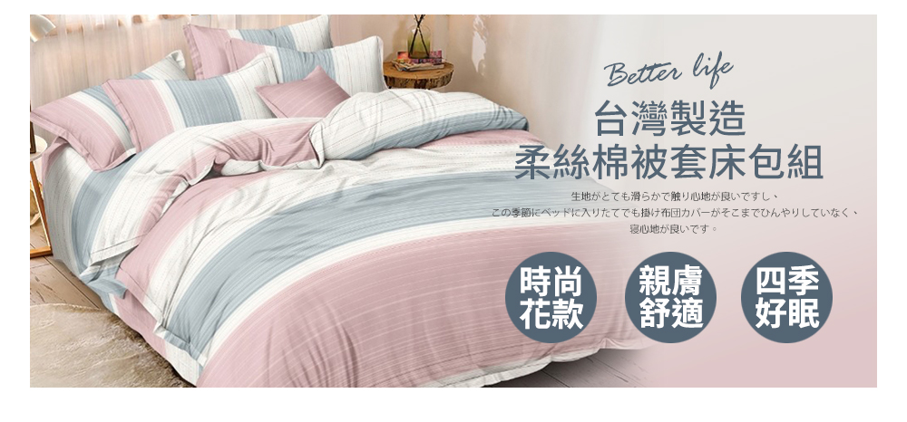 產品名稱: 台灣製造柔絲棉床包被套組
