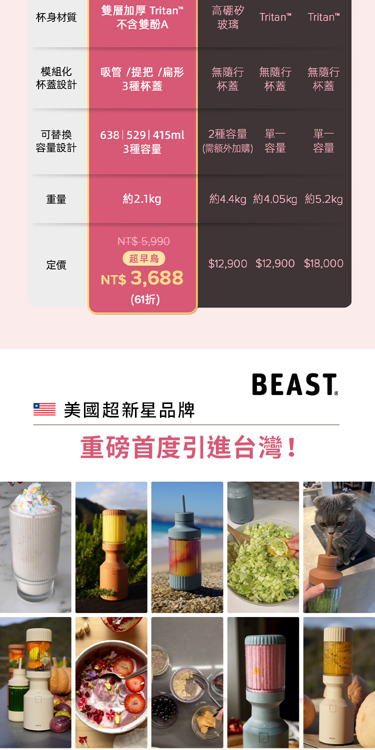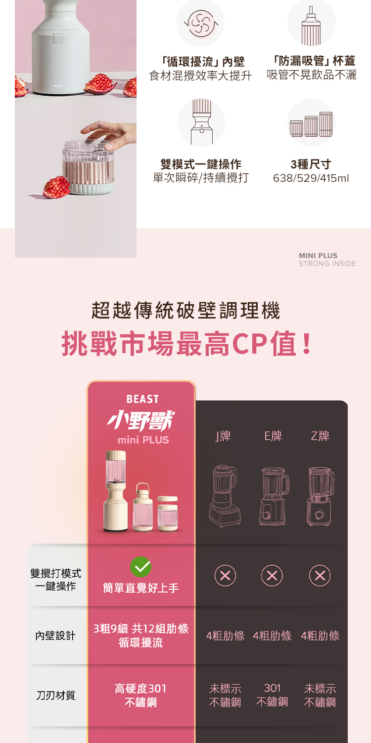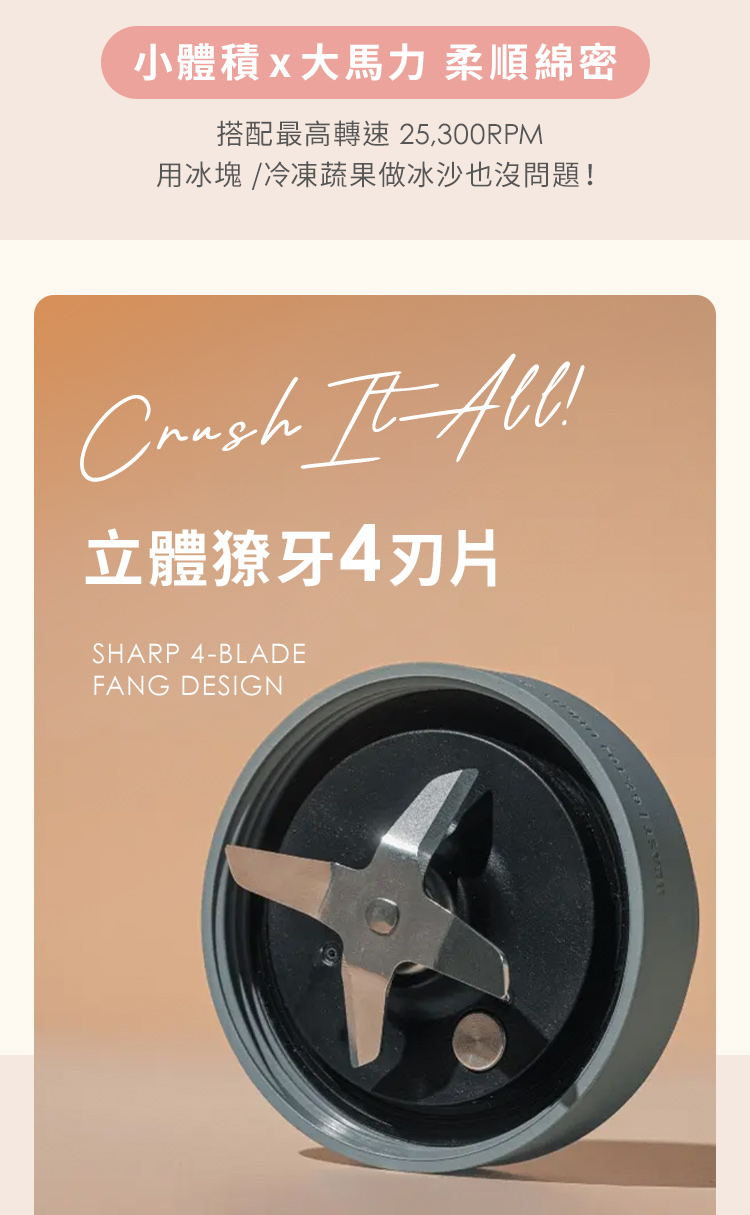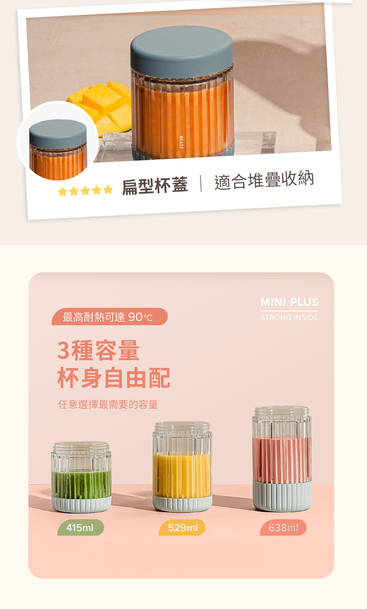 產品名稱: 《 mini PLUS|小野獸 》破壁 x 調理 x 戶外 三機一體|全營養萃取 戶動能量調理機