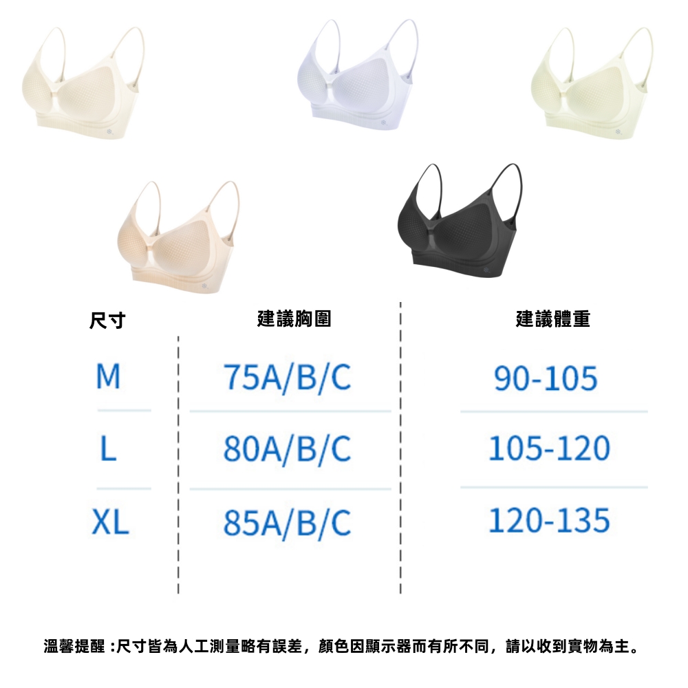 注意事項(尺寸選擇建議): M (34/75 ABC) L (36/80 ABC) XL (38/85 ABC)