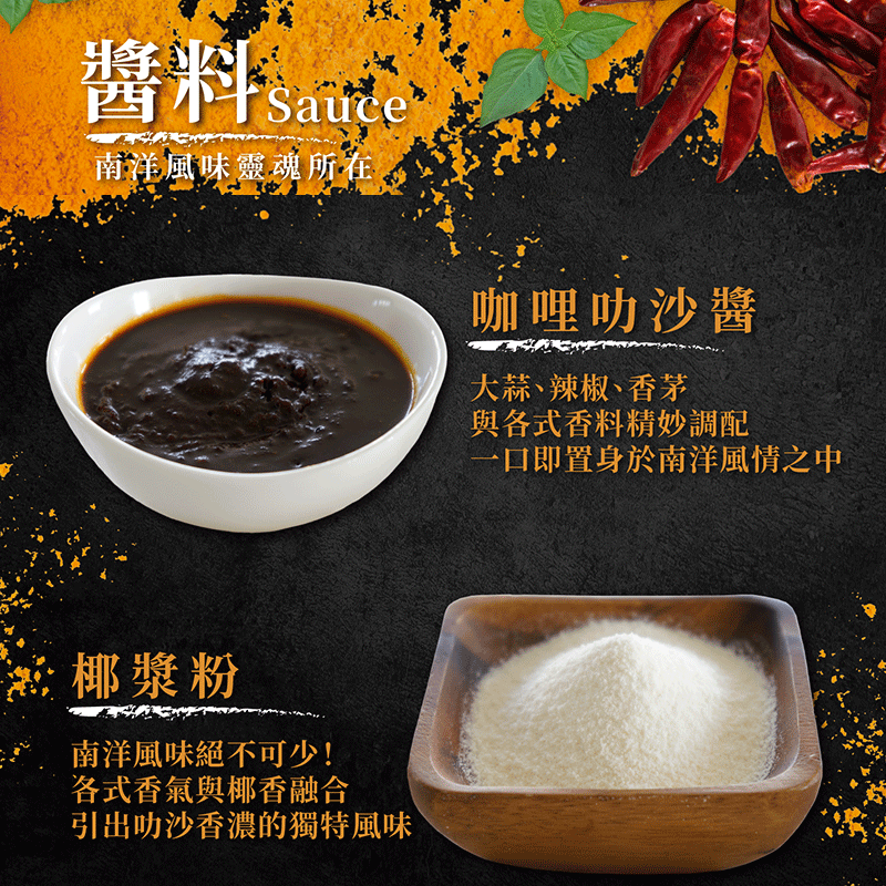 內含:咖哩叻沙*4、胡蔴醬香*4、香蔥椒麻*4