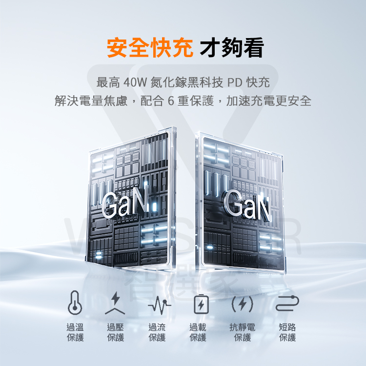 規格: 材質:PC、鋅合金、不鏽鋼 輸入:100-240V~50/60Hz、1.2A USB-C1/USB-C2輸出:5V-3A/9V-3A/15V-2.4A/20V-2A USB-C1+USB-C2輸出:20W+20W 最大輸出功率:40W