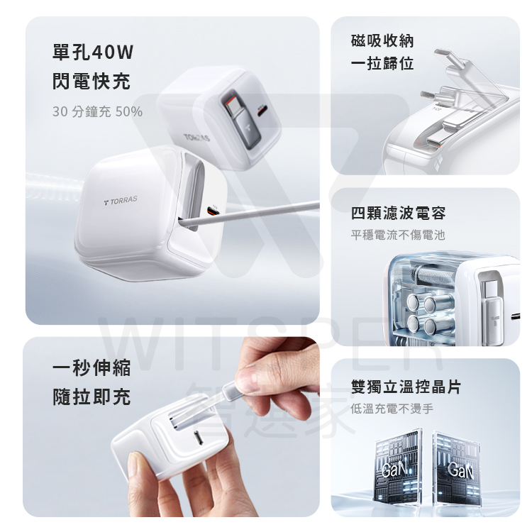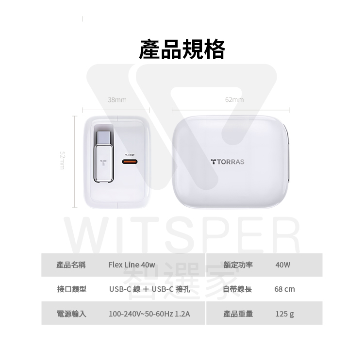 產品名稱: TORRAS FlexLine 40W 伸縮線PD快充充電器