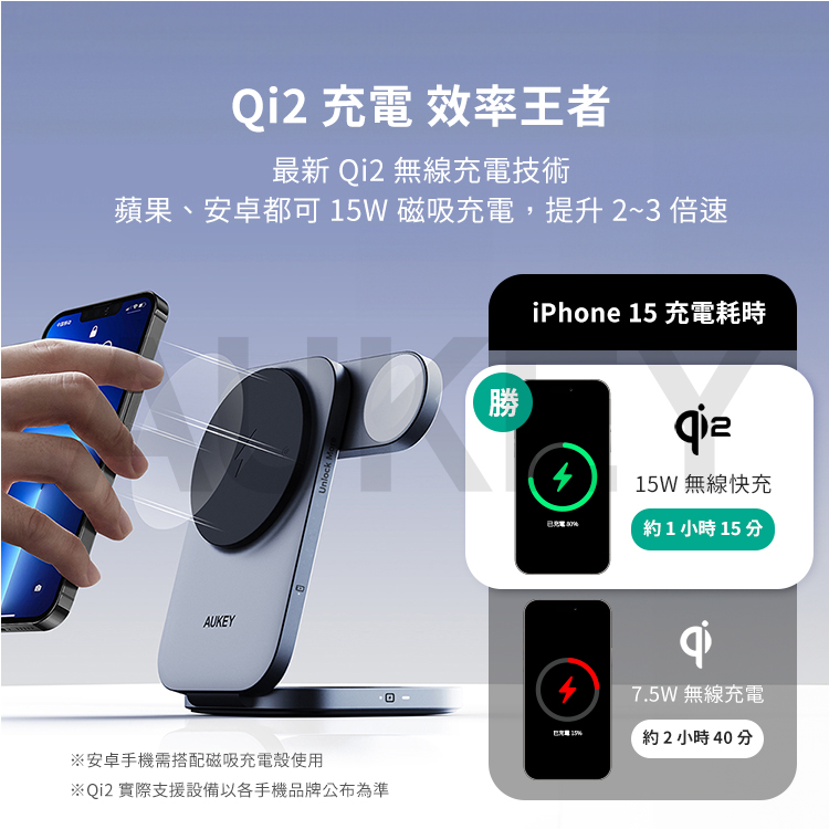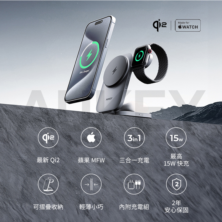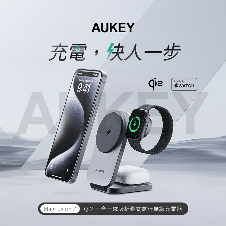 產品名稱: AUKEY MagFusion Z (LC-MC312) Qi2 三合一磁吸折疊式旅行無線充電器
