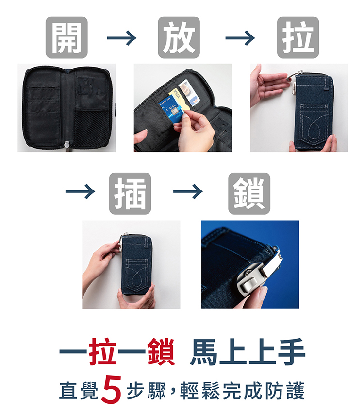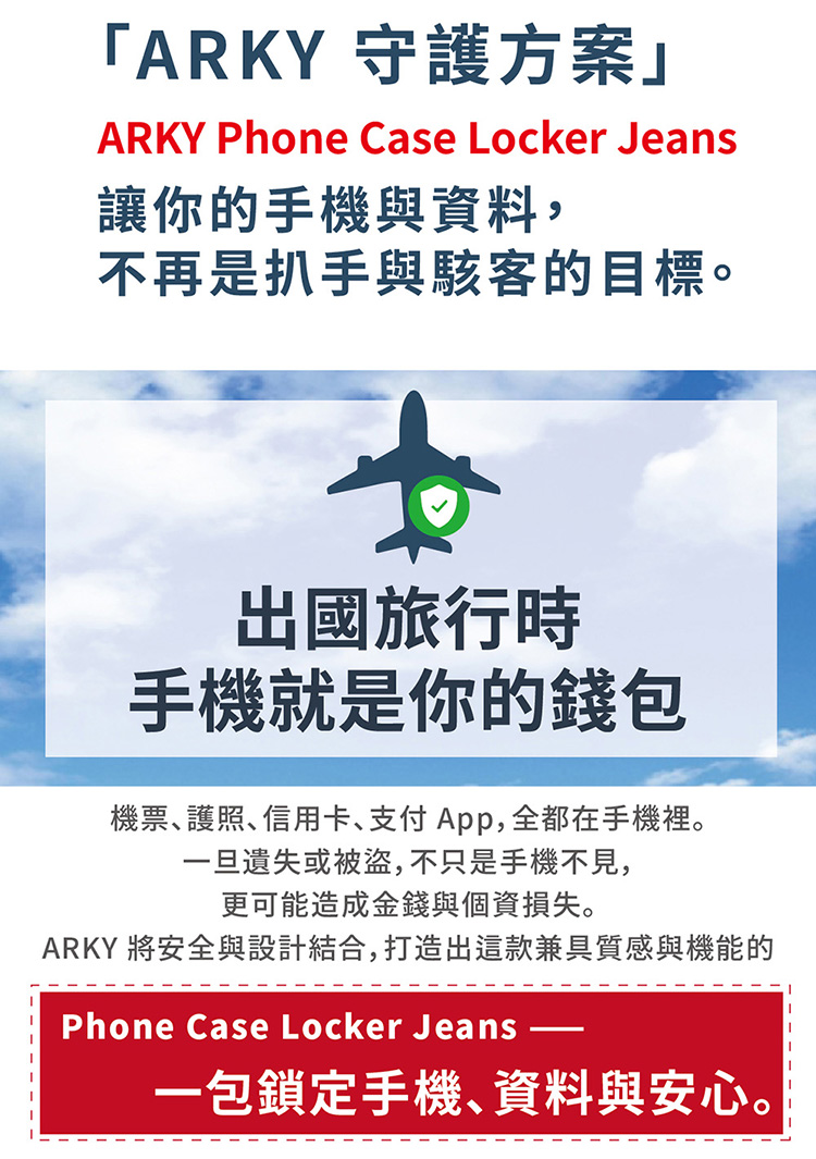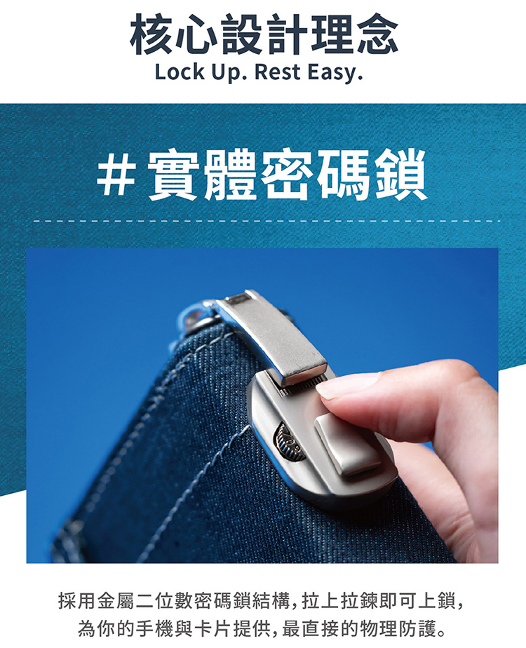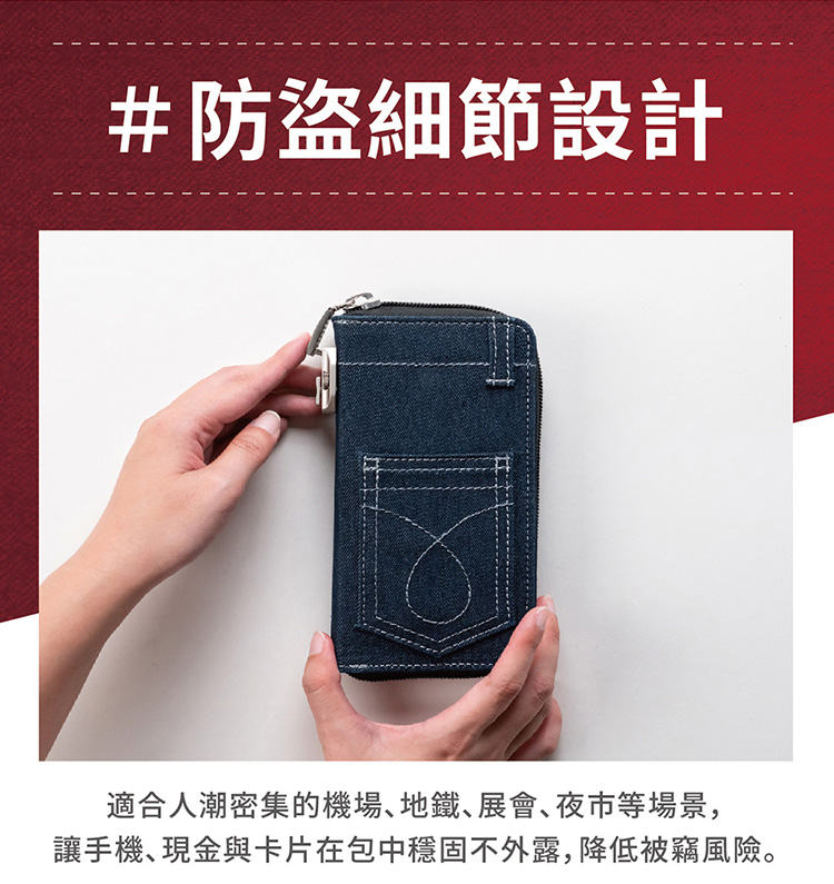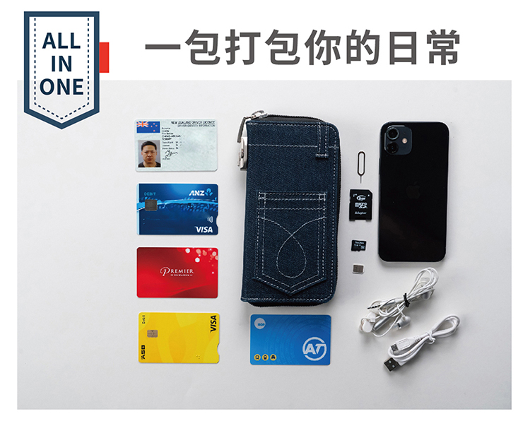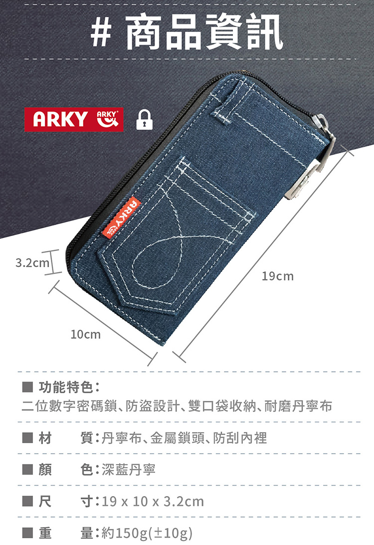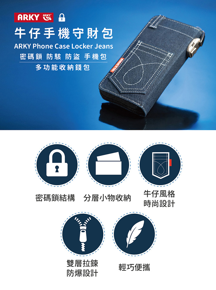 產品名稱: 【ARKY】 防盜密碼鎖牛仔手機包 多功能收納錢包