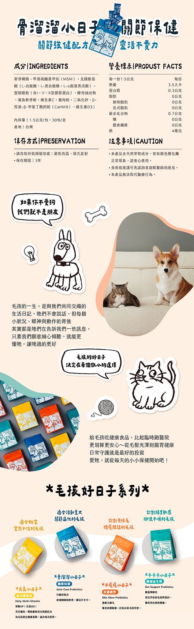 食用方式: 10公斤以下犬貓每日1包;10公斤以上犬貓每日2包。可直接給犬貓食用或拌入食物中餵食。