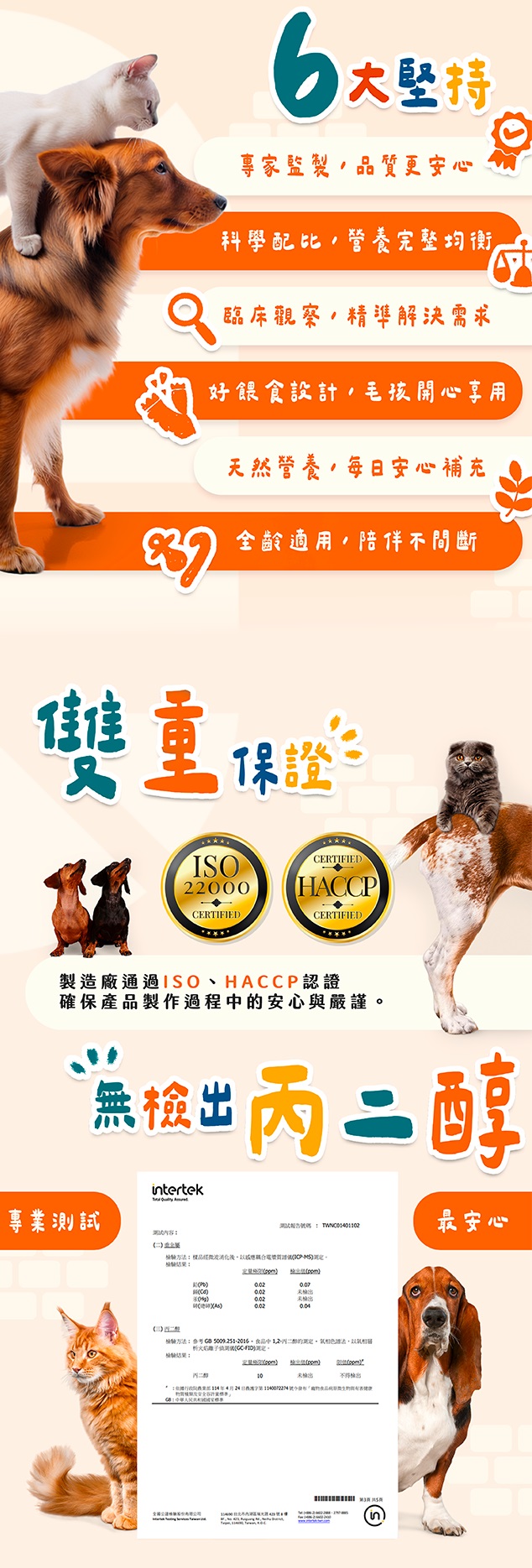 過敏原資訊: 食用前建議可先諮詢家庭獸醫師的意見。
