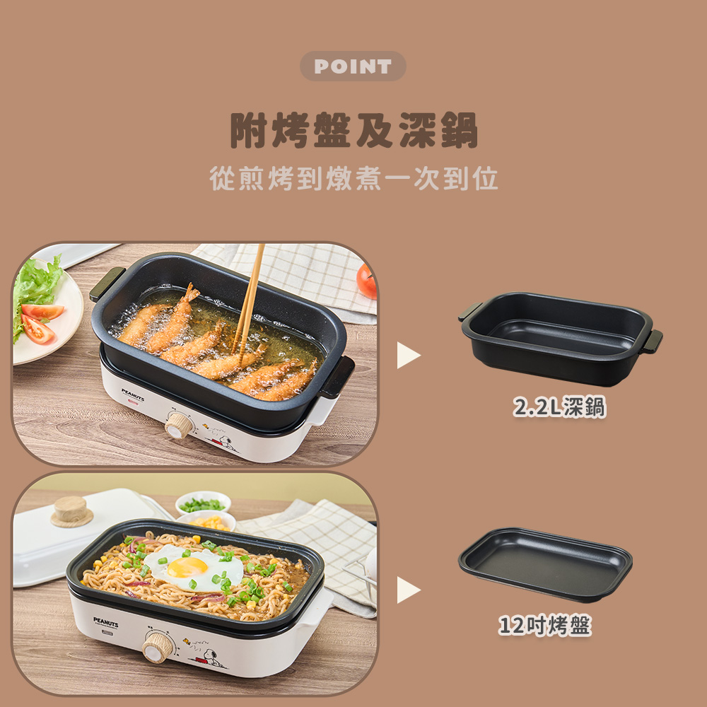 配件: 上蓋、12吋烤盤、2.2L深鍋