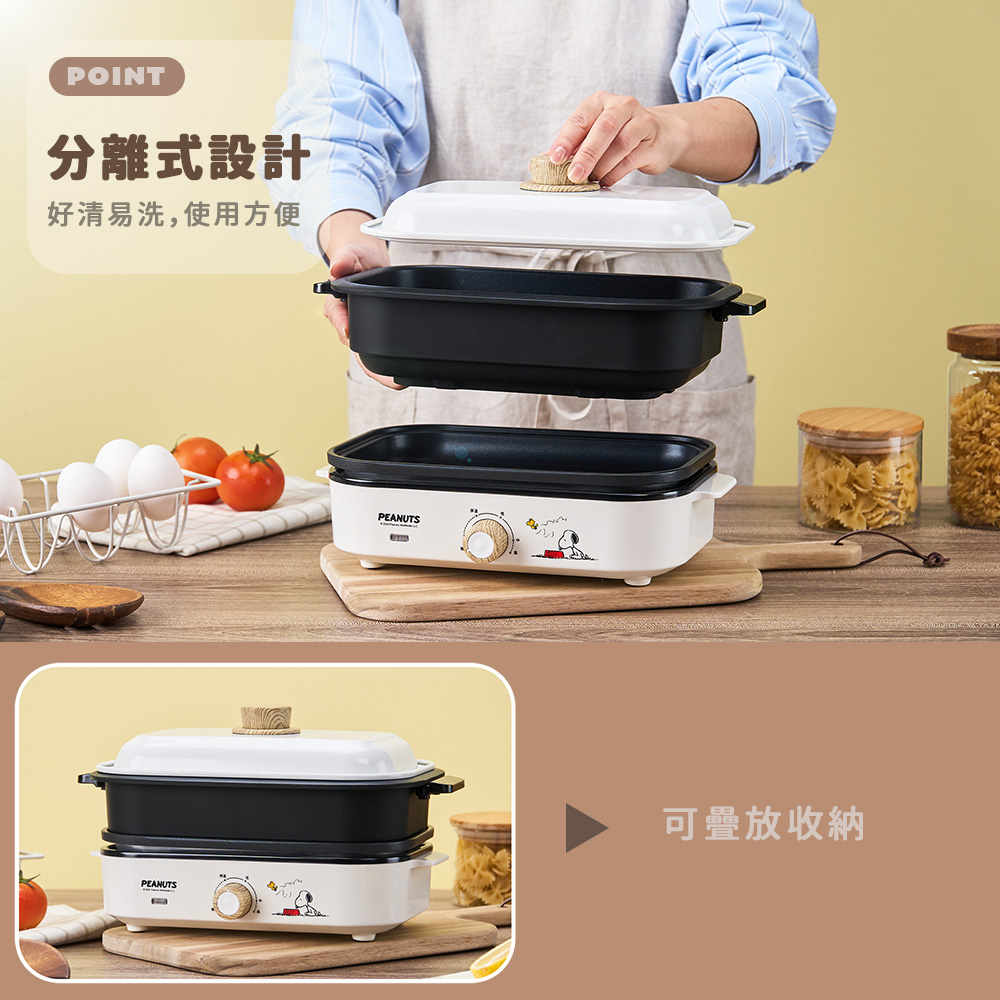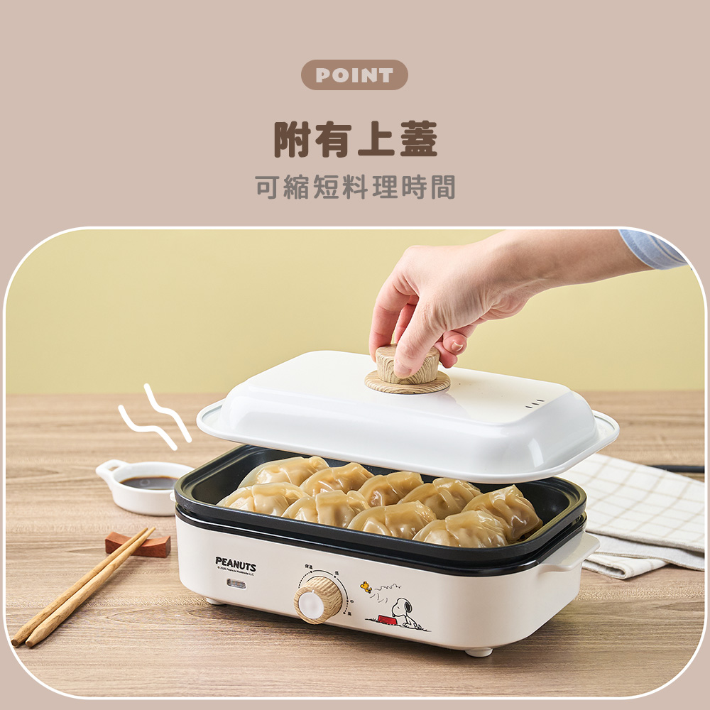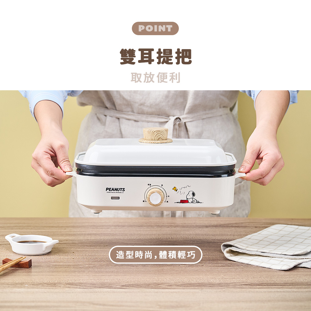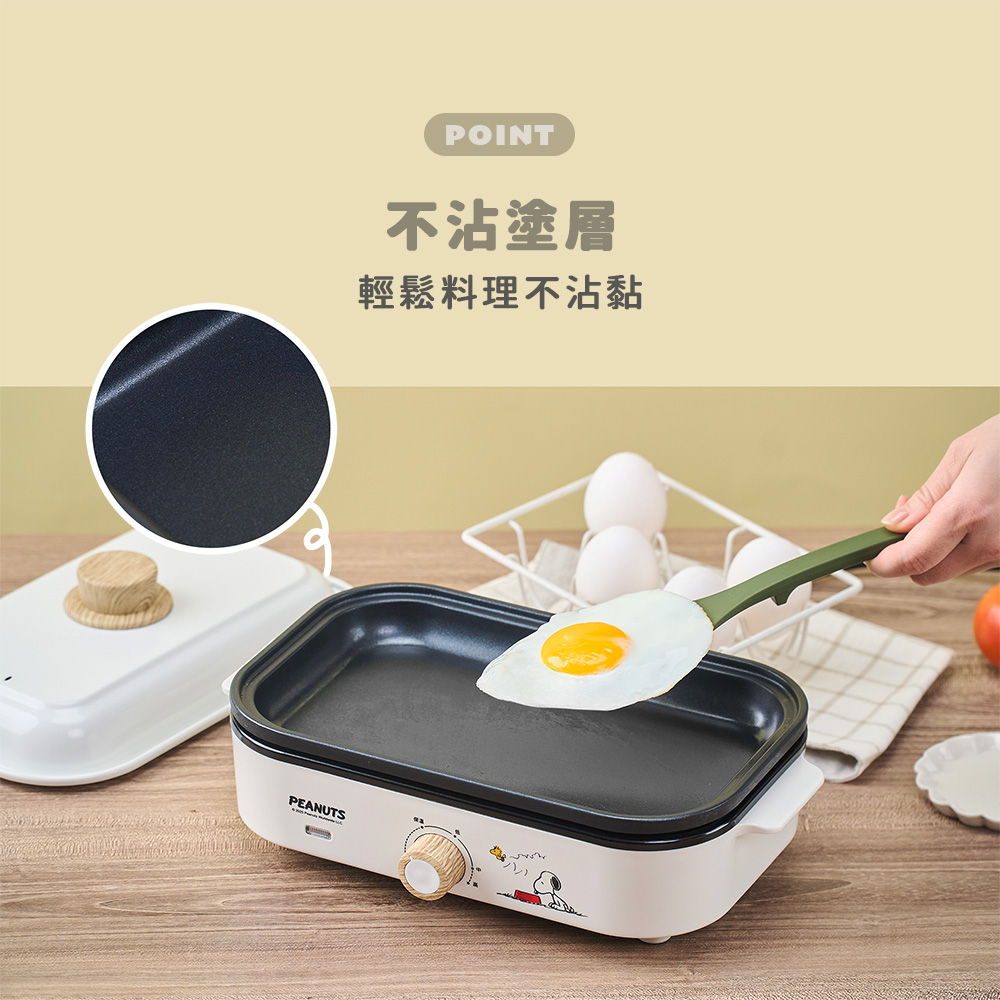 材質: 烤盤、鍋體-壓鑄鋁+不沾塗層,上蓋-冷紮鋼板+塗層,外殼-耐熱PP塑膠