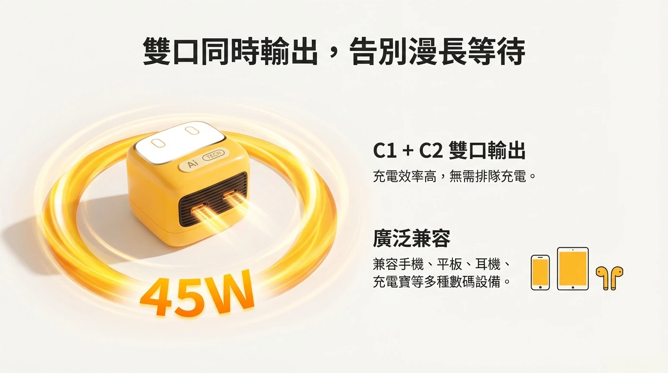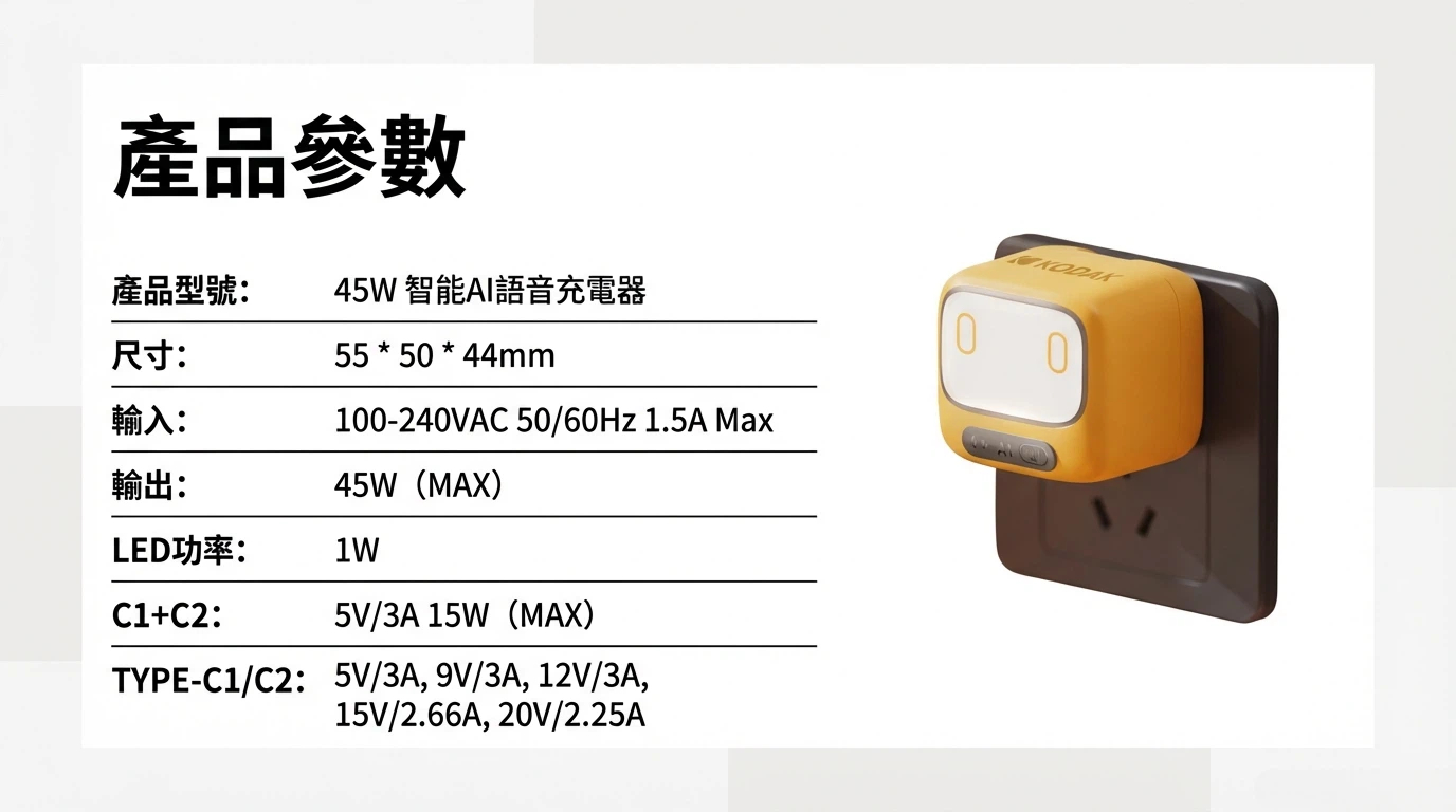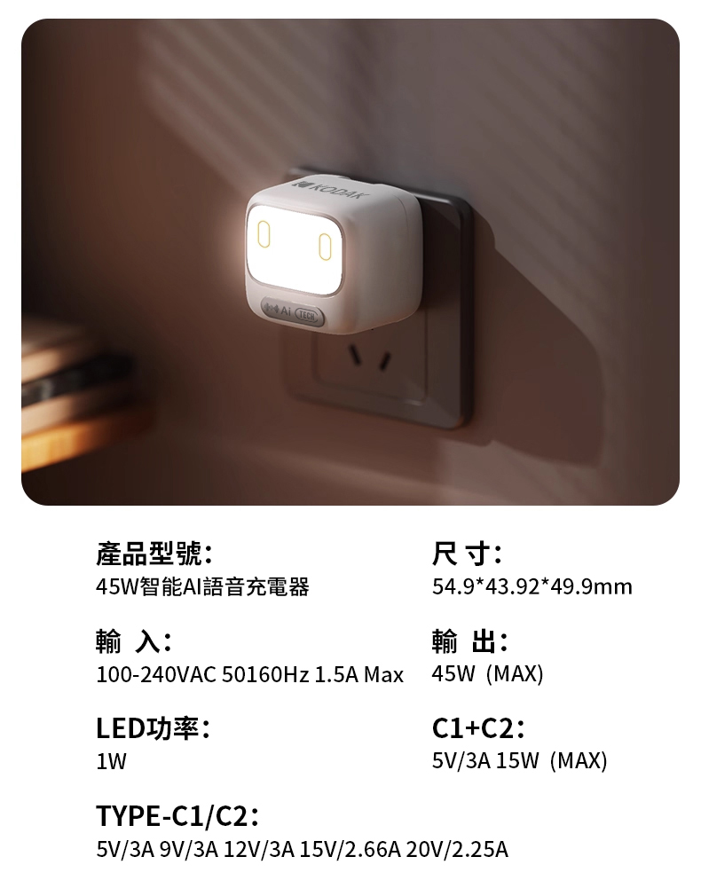 產品名稱: KD-AI061-PDAI 45W智能AI語音充電器