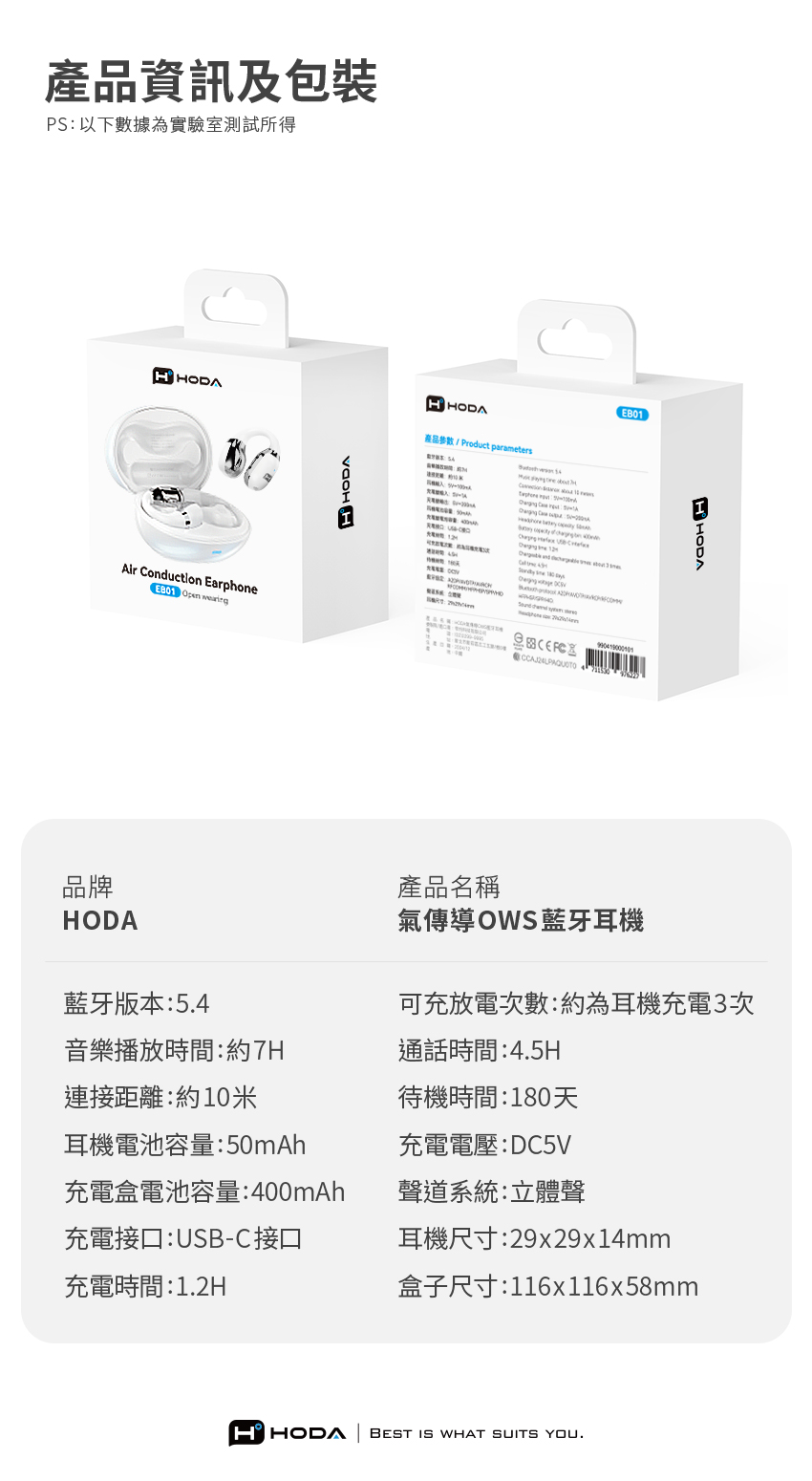 產品名稱: HODA氣傳導OWS藍芽耳機