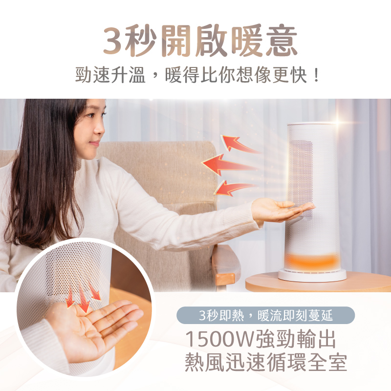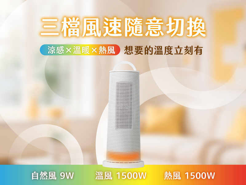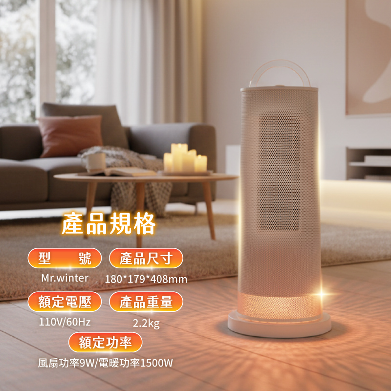 消耗功率: 風扇功率9W/電暖功率1500W