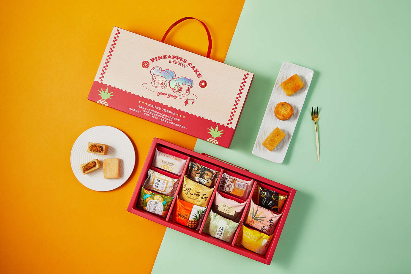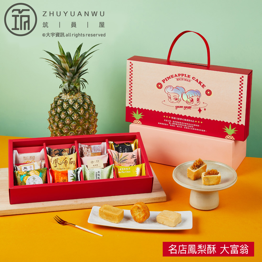 由大富翁精選全台12家經典鳳梨酥品牌,聯手打造夢幻級「12入聯名禮盒」,從北到南、從老字號到創新派,每一口都是職人精神與在地風土的完美交會。