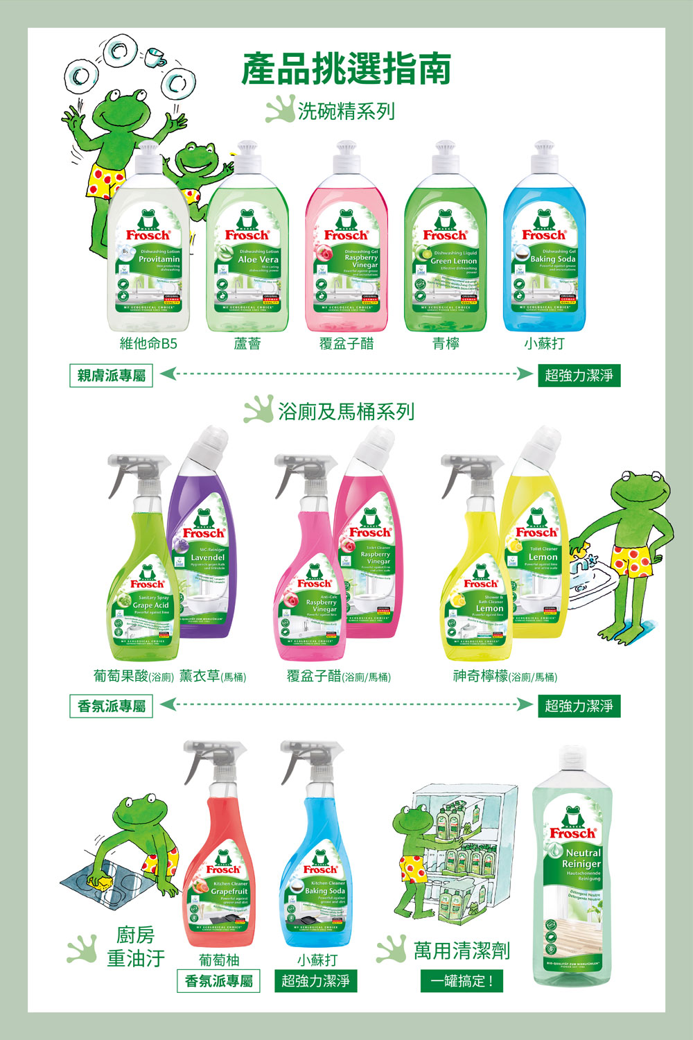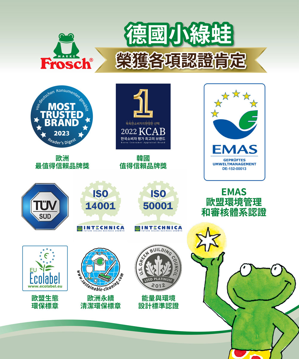 內含:【Frosch 德國小綠蛙】超濃縮洗碗精500ml x1 (款式隨機)