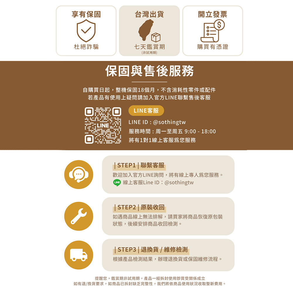 注意事項: ⚠️ 產品保固期限統一依照上述商品內文說明為準。 ⚠️ 保固商品務必保留完整包裝,以免喪失保固權益。 ⚠️ 如遇新品瑕疵,請於7日鑑賞期內進行退換貨申請,逾期恕不受理。 ⚠️ 收到包裹後請務必進行開箱錄影,並請一鏡到底以保障雙方權益。