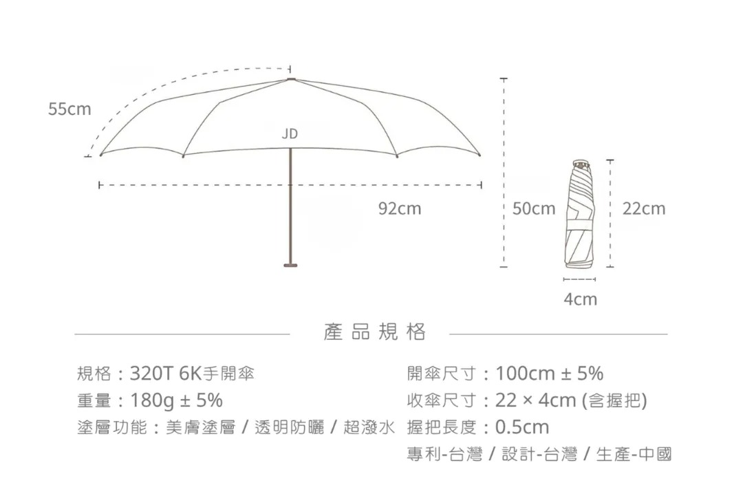 尺寸/規格:22 * 4 * 4cm 100cm 傘面