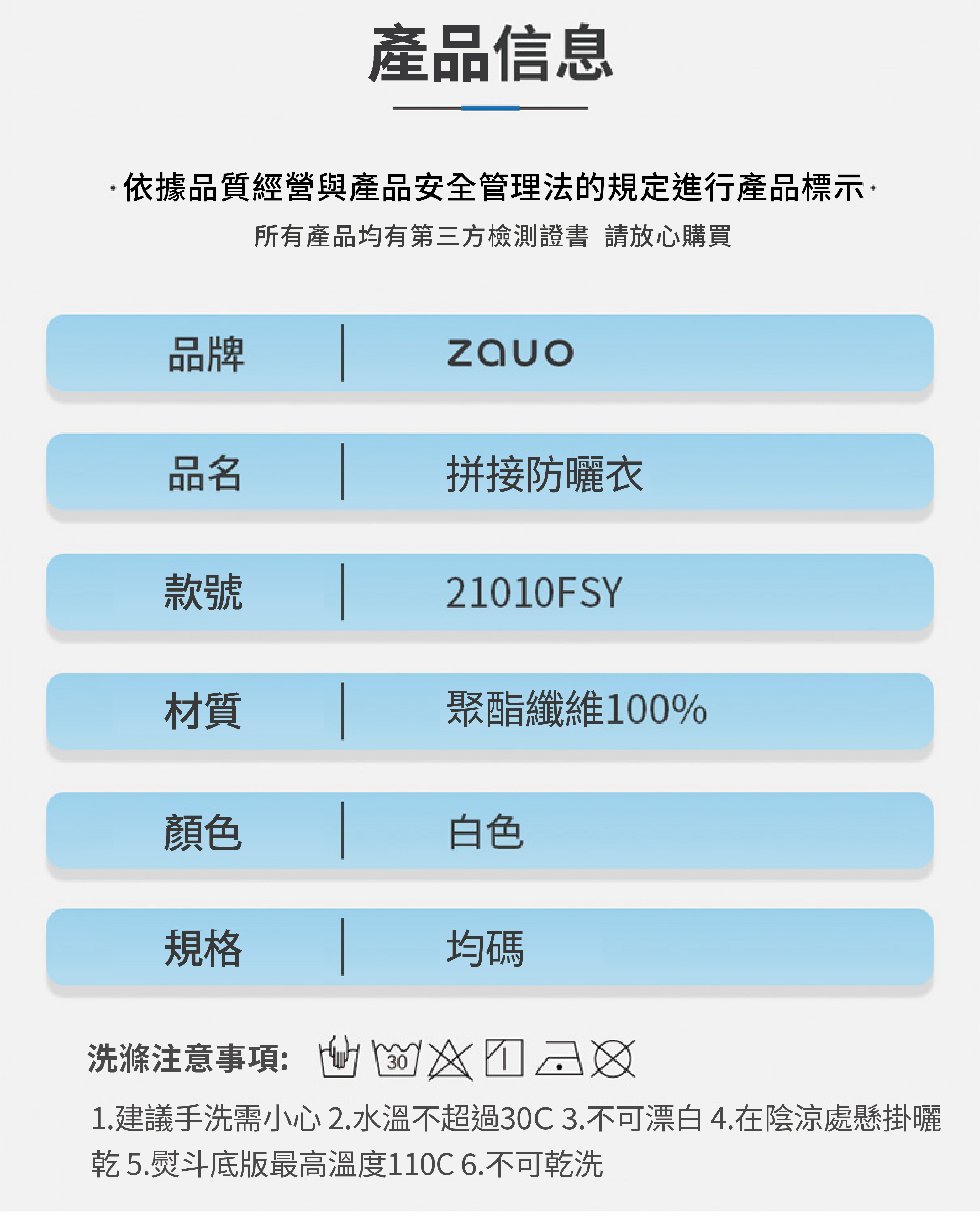 產品名稱: zauo拼接防曬衣