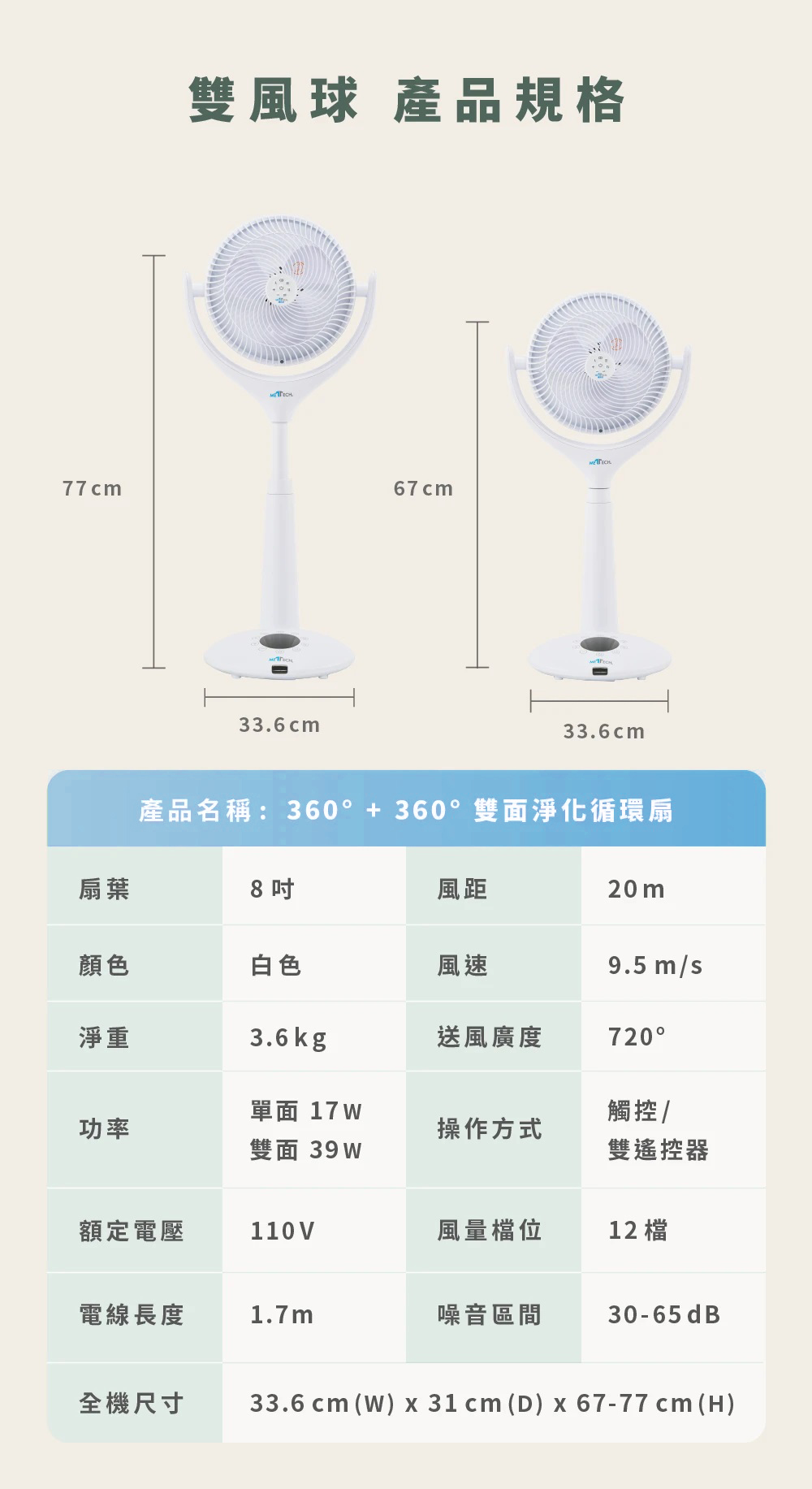 內含:雙風球360°+360° 雙面淨化循環扇*1、遙控器*2