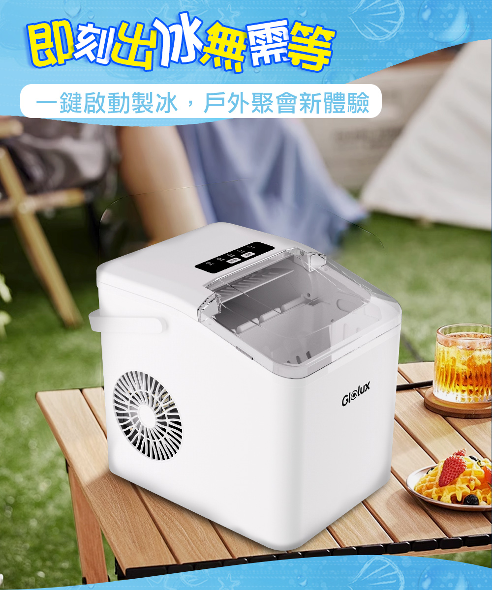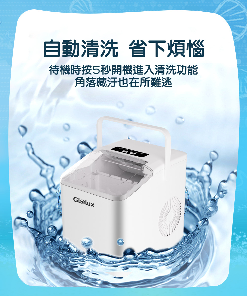 內含:【Glolux】微電腦全自動製冰機+香薰款手持風扇-少女粉
