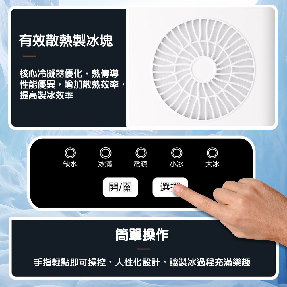 控制台:缺水,冰滿,電源,小冰,大冰