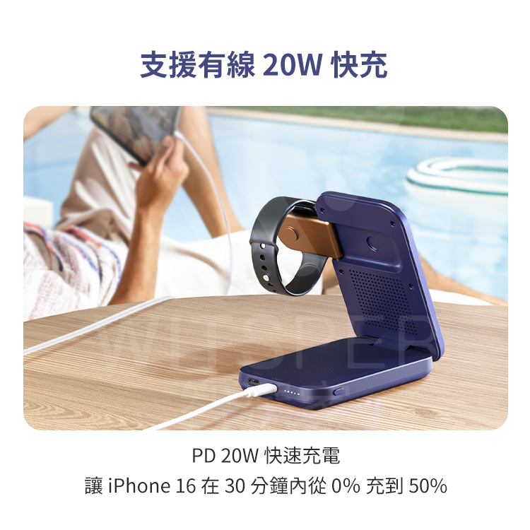 規格: USB-C輸出:5V⎓3A ,9V⎓2.22A,12V⎓1.67A 無線充電輸出:15W (Max) 手錶無線輸出:3W Airpods無線輸出:5W(Max) 合計輸出20W