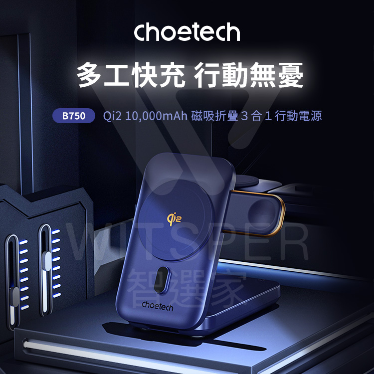 產品名稱: B750 Qi2 10000mAh 磁吸支架三合一行動電源