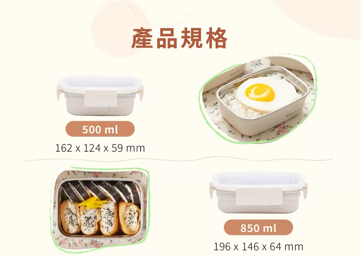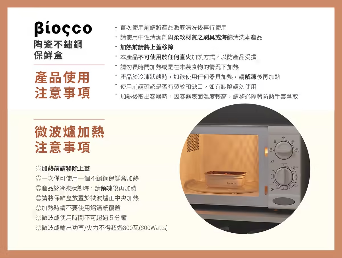 內含:BIOSCO 韓國陶瓷不鏽鋼保鮮盒 850 ml+BIOSCO 韓國陶瓷不鏽鋼保鮮盒 500 ml