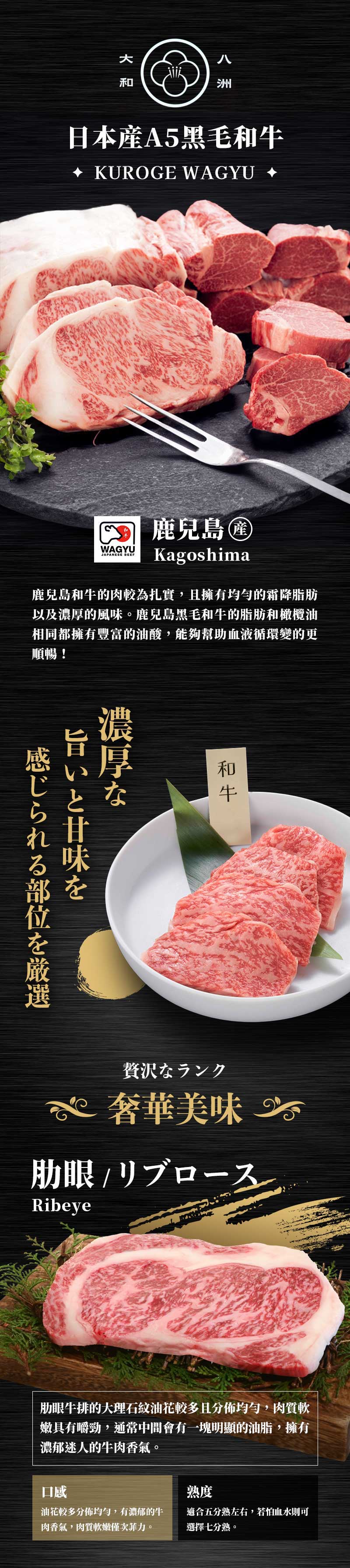 內含:【大和八洲】頂級日本鹿兒島A5黑毛和牛_肋眼牛排