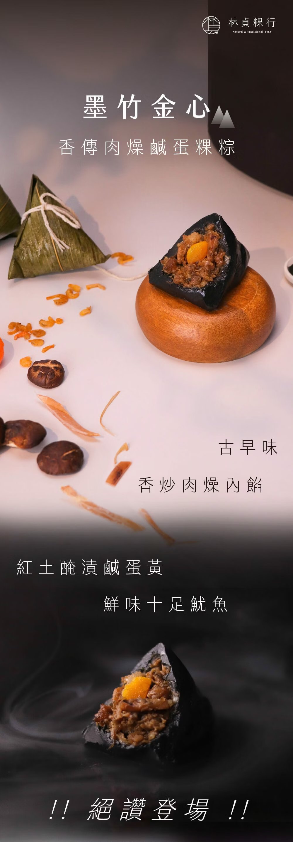 內含:【林貞粿行】墨竹金心(香傳肉燥鹹蛋粿粽)|端午限定|3入組