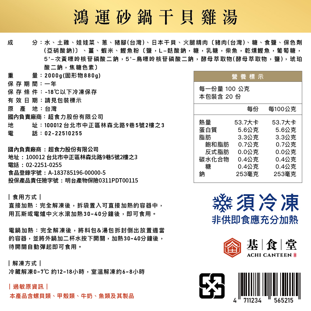 內含:【基食堂】鴻運砂鍋干貝雞湯2000g