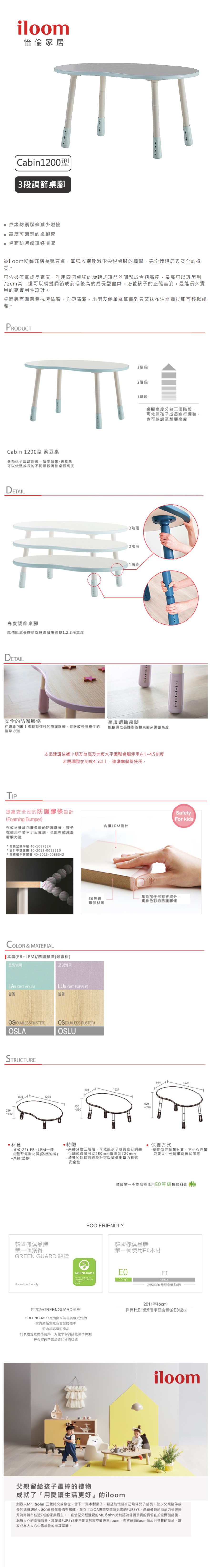 內含:【iloom 怡倫家居】Cabin 兒童1200型三段式調整豌豆桌*1