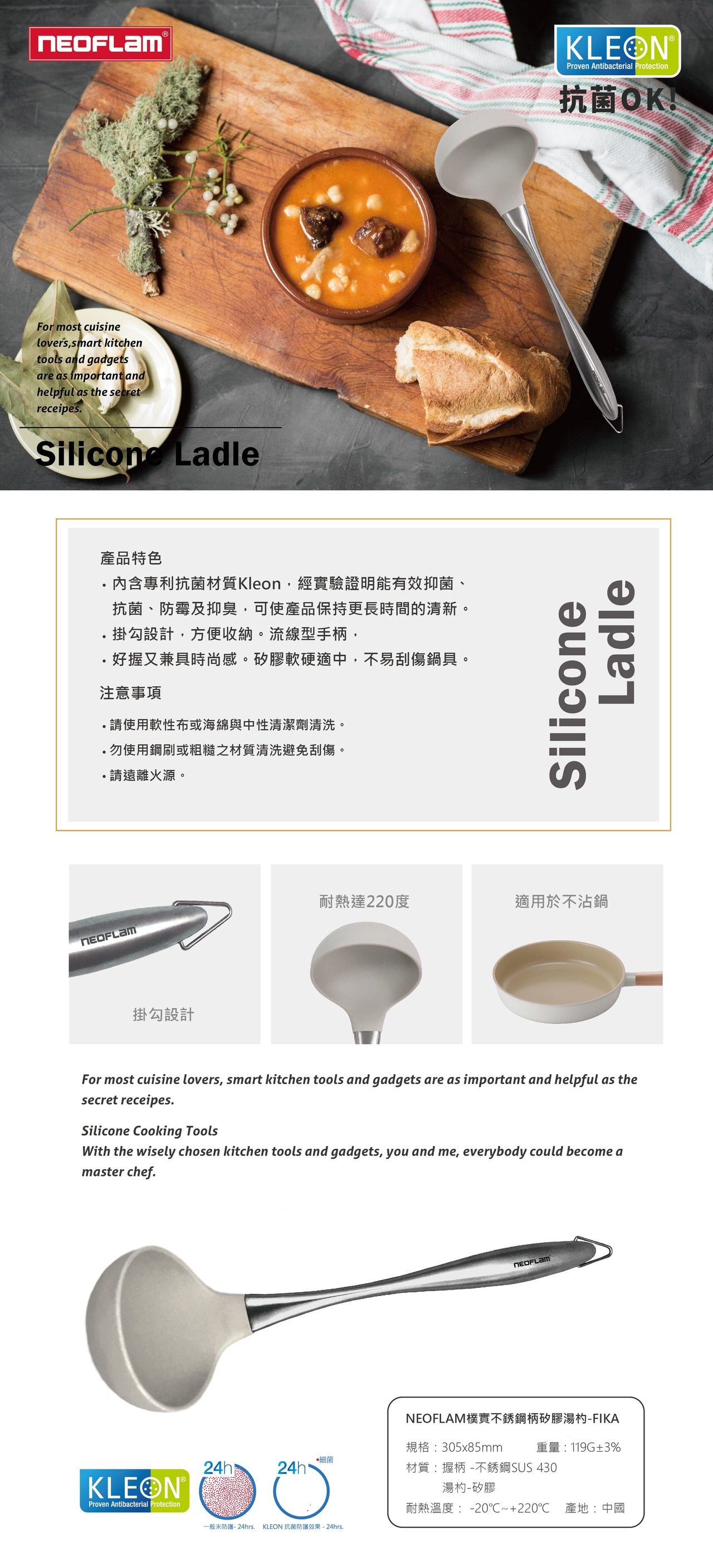 材質:握柄 -不銹鋼SUS430 / 湯勺 -矽膠