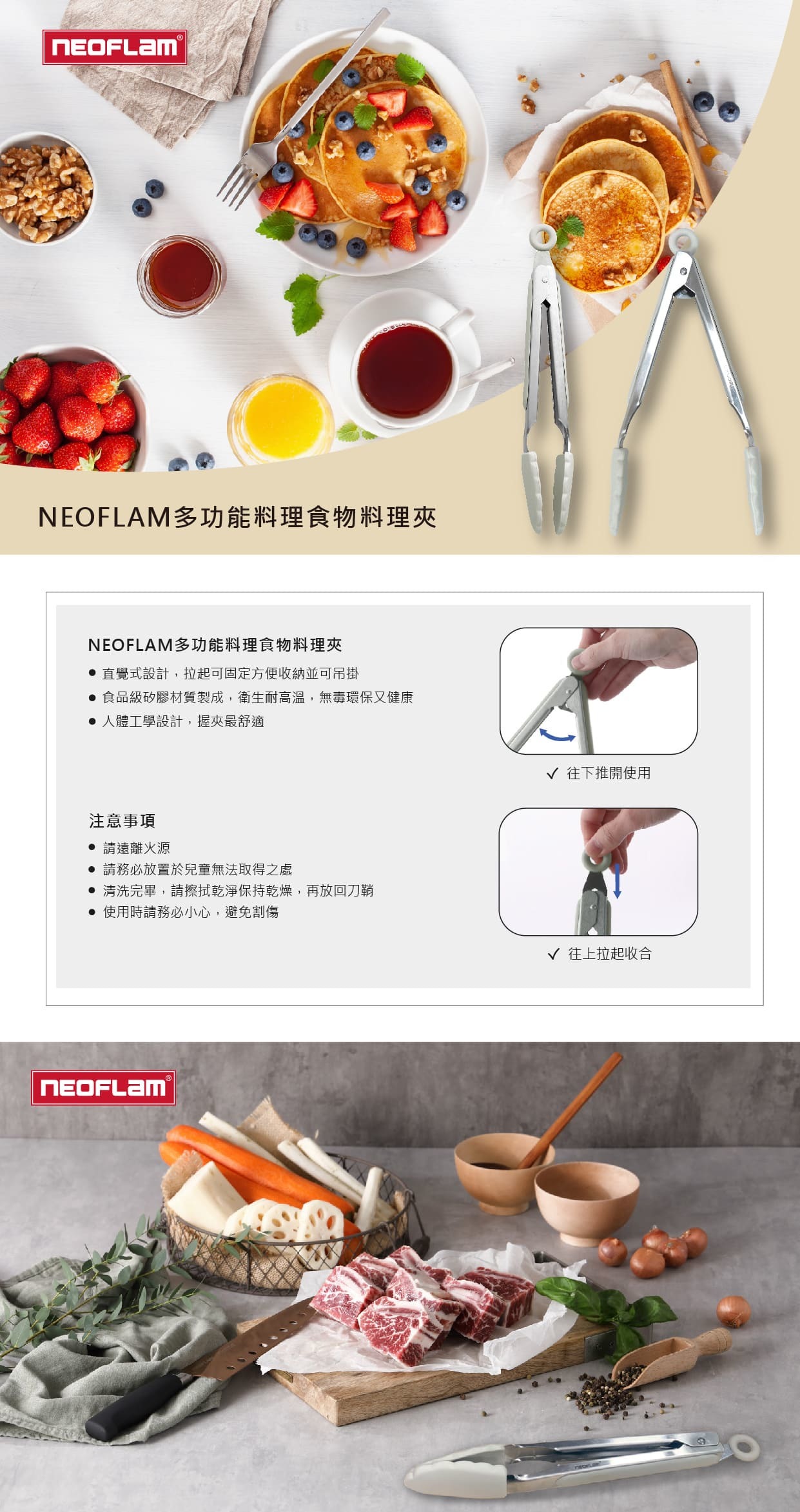 規格:料理刷 : 253*49mm (整支長度),重量 : 70克 / 刮刀 : 286*60mm ,重量 : 70克 / 料理夾 : 229mm(總長),重量 : 120克