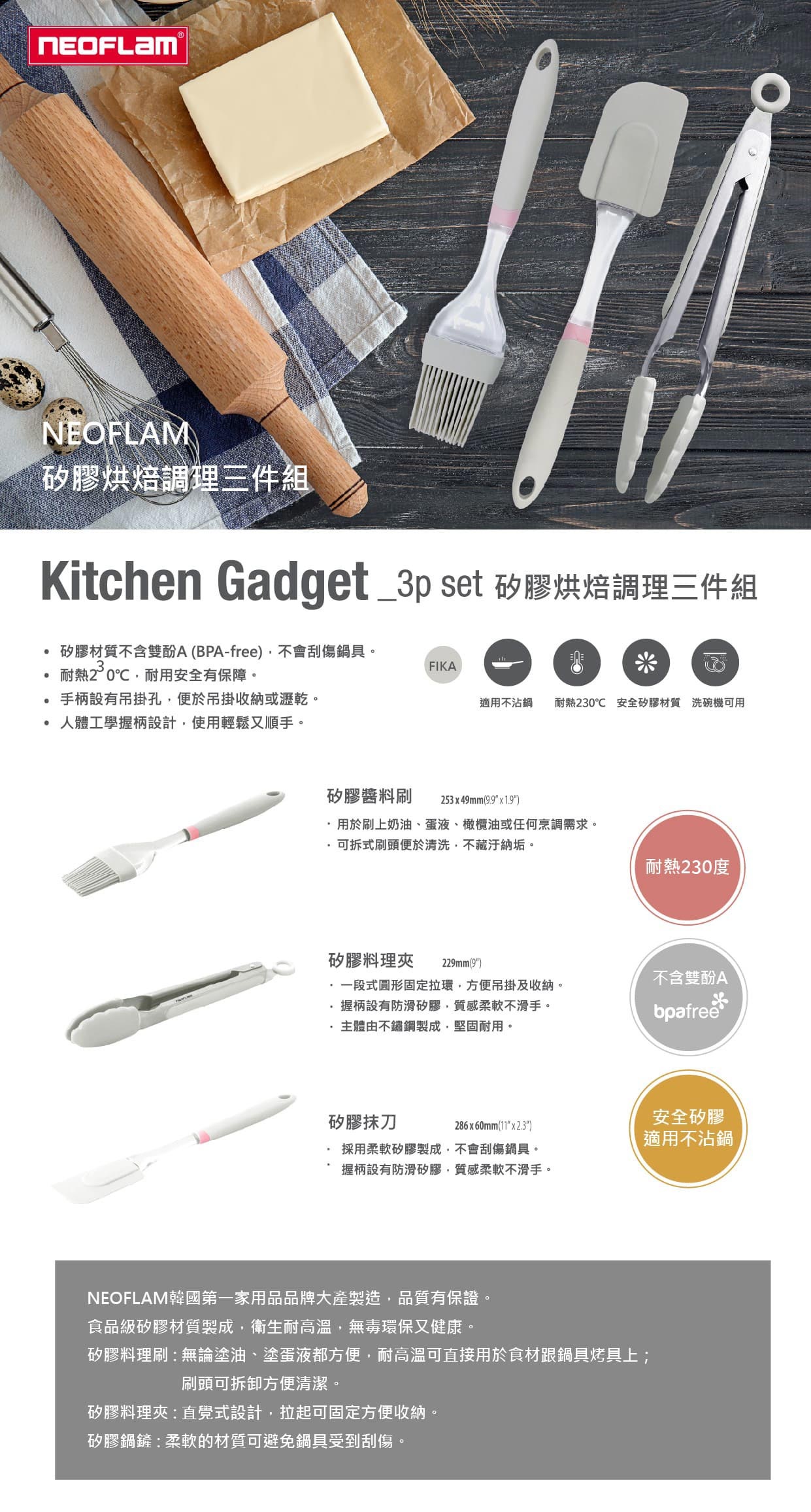 【NEOFLAM】矽膠抗菌烘焙調理三件組-FIKA