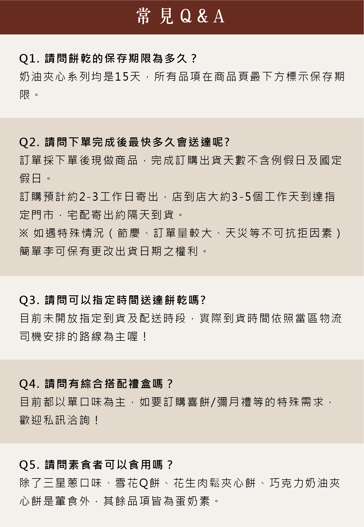 入口後即感受到層次豐富的口感,讓你應景享用還吃不膩!新創夾心,一種傳統且熟悉的味道!