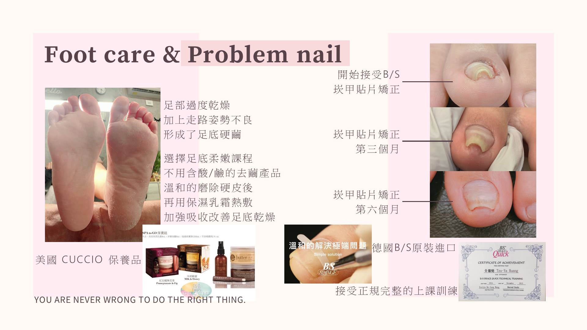 ★足部流程:艾草溫經散寒足浴→指甲修長度甲型、甲面拋整、甘皮推整修剪、甲縫髒污清潔、指尖兩側硬皮電動磨除→指緣油修護滋潤→柔嫩去角質到腳踝→小腿放鬆精油按摩、小腿3D滾輪舒壓按摩→電熱足套溫體熱敷