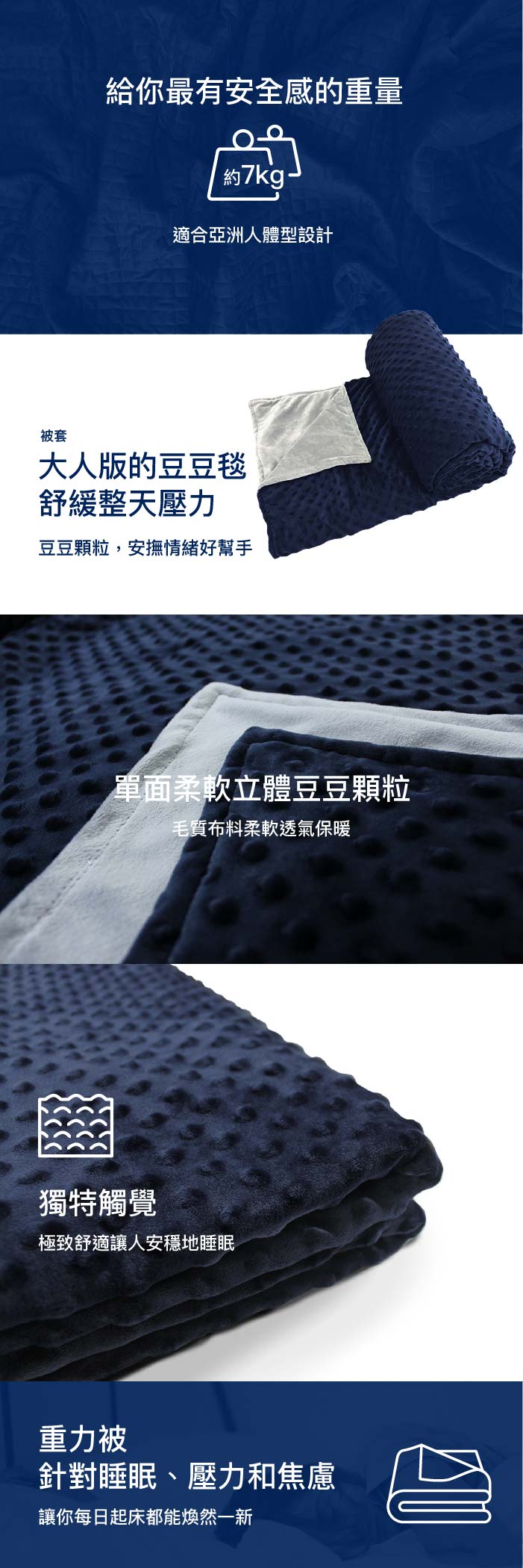 內容物:重力被一條、雙面兩色巧柔豆豆毯一條(附收納袋)