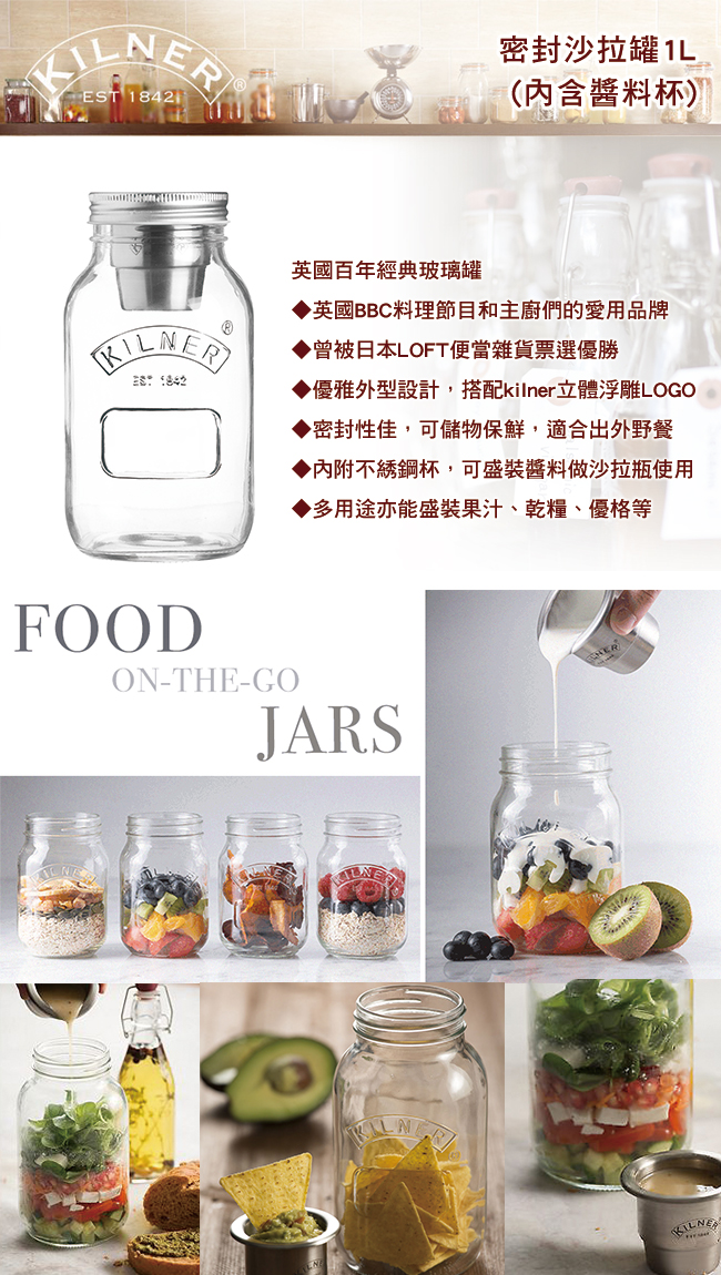 【KILNER】密封沙拉罐1L(內含醬料杯) 一個