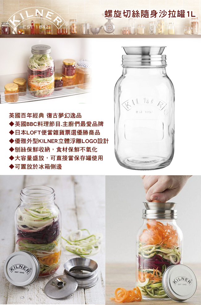 內含:【KILNER】螺旋切絲隨身沙拉罐1L 一個