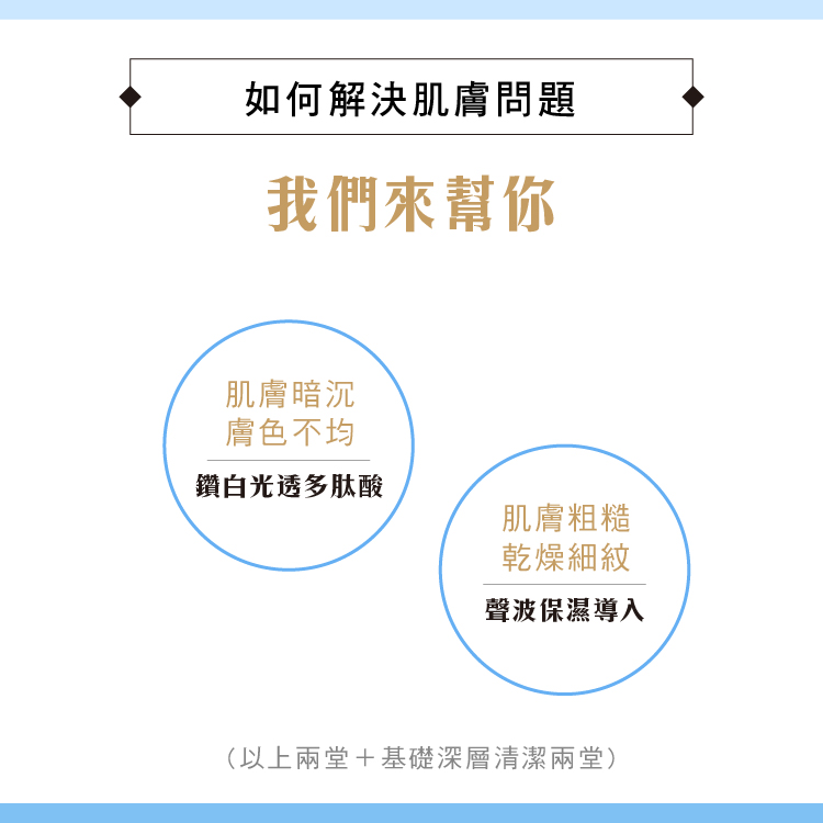 深層卸妝清潔+鑽白光透多肽酸+聲波保濕導入各一堂 原價$1564