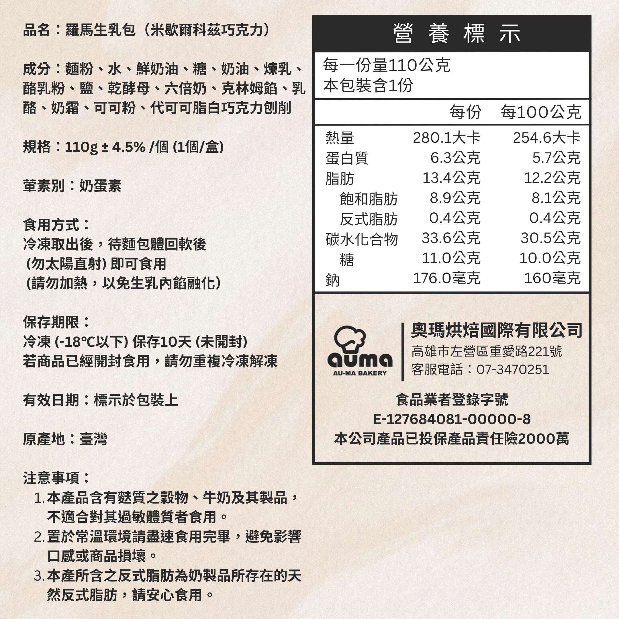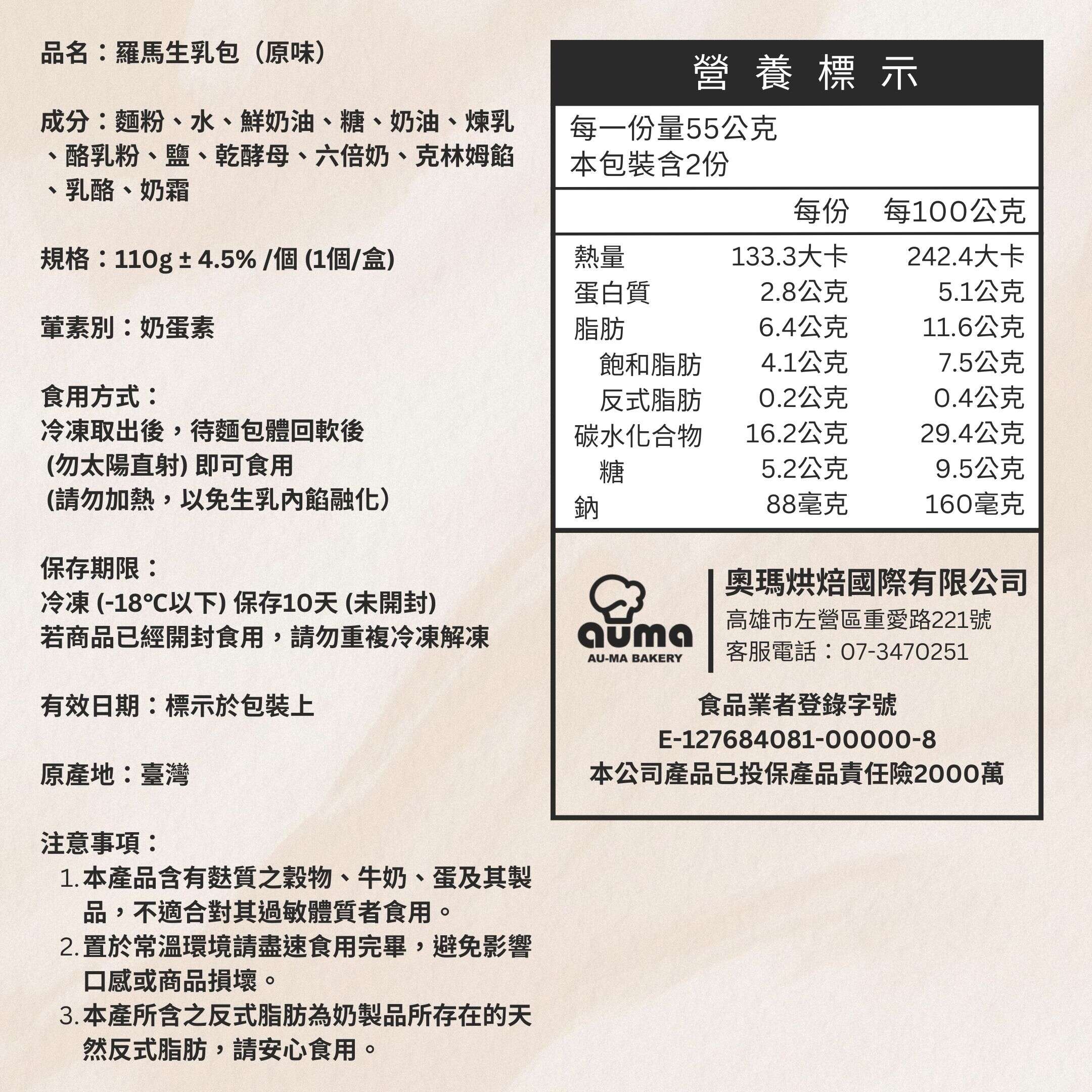 3. 本產品含有牛奶、蛋、含麩質之穀物及其製品,不適合對其過敏體質者食用。