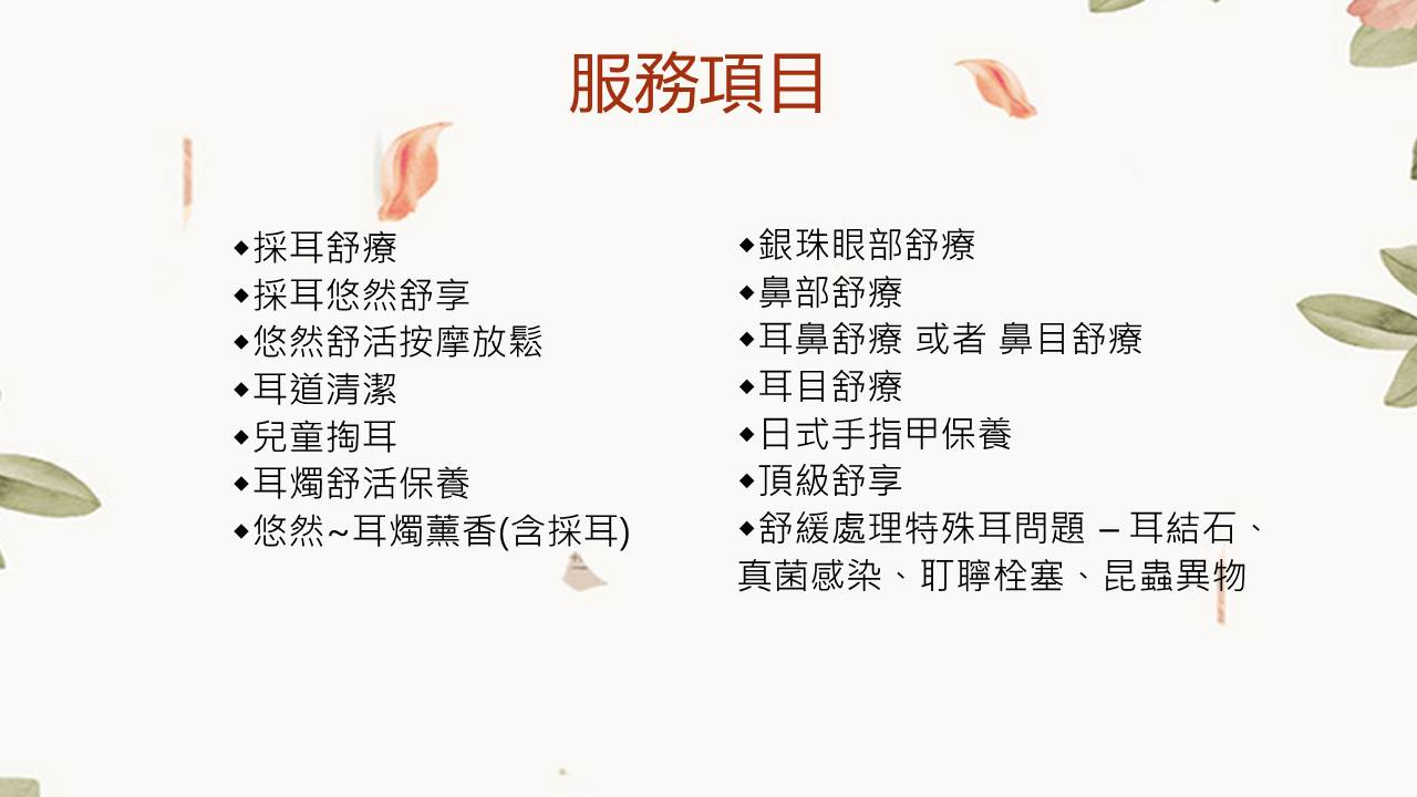 ★耳朵SPA流程:採耳舒療→耳燭薰香→耳部、面部、頸部、頭部、手部精油舒活按摩→熱石按摩→悠然舒絡肩頸。