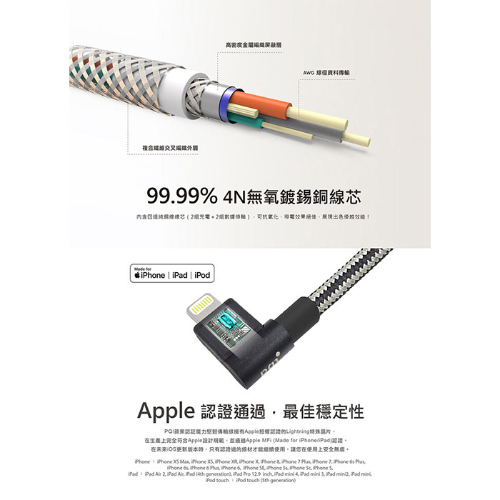 內含:【PQI】MFi認證充電傳輸線 30CM