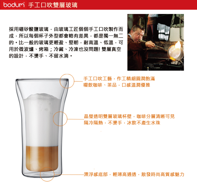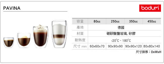 內含:【丹麥Bodum】PAVINA雙層玻璃杯250CC-2入