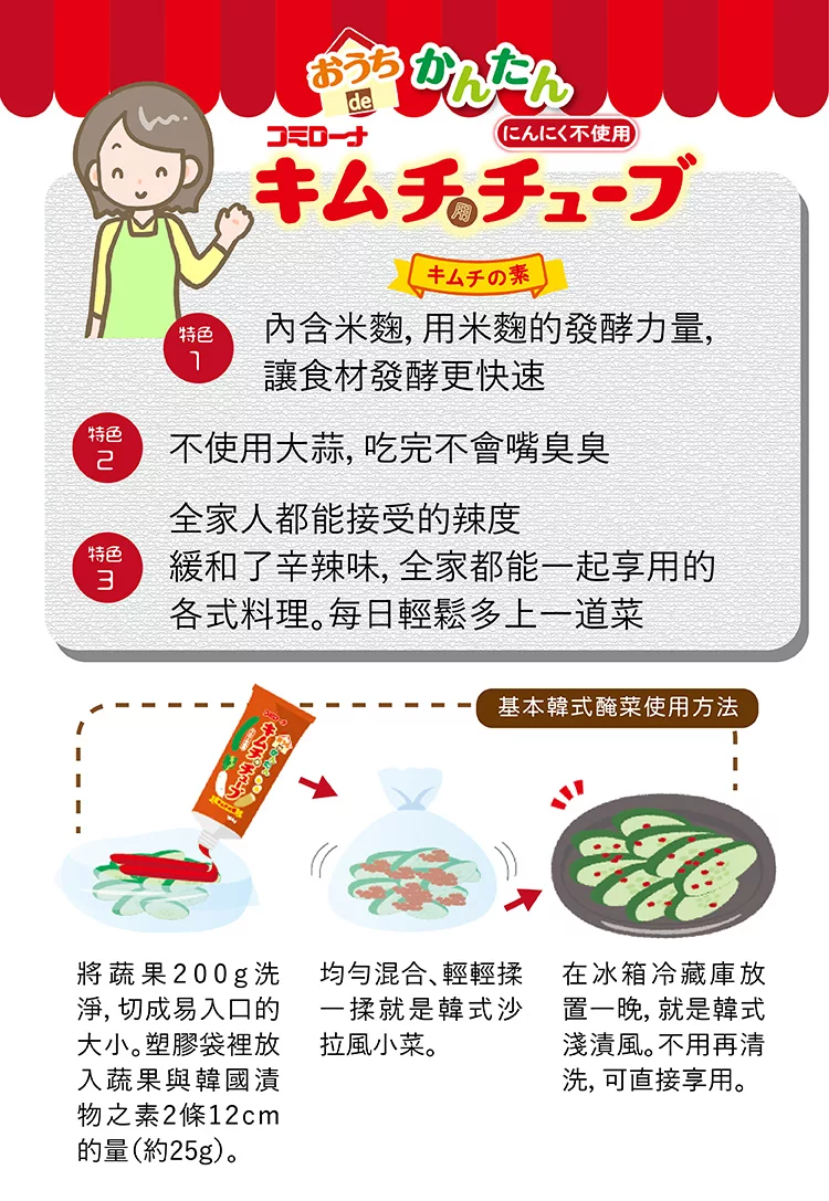 【內容物成份】水、食鹽、米麴(米+麴菌)、辣椒粉、味噌(米味噌大豆味噌、鰹魚粉、食鹽)、釀造醋、蝦子調味粉末(玉米糊精、蝦醬(沙拉油、蝦頭、水、糖、大蒜、鹽、辣椒)、鹽)、生薑粉、魚醬粉末(玉米糊精、魚醬(水、糖、辣椒、大蒜、魚、檸檬)、蛋白加水分解物)、調味料(麩胺酸鈉、琥珀酸二鈉)、食用酒精、粘稠劑(羥丙基磷酸 二澱粉、 關華豆膠、玉米糖膠)、酸味劑(DL-蘋果酸鈉)、甘味料(甜菊糖苷、蔗糖素)、紅麴色素、香辛料萃取物(辣椒萃取物、冰醋酸)