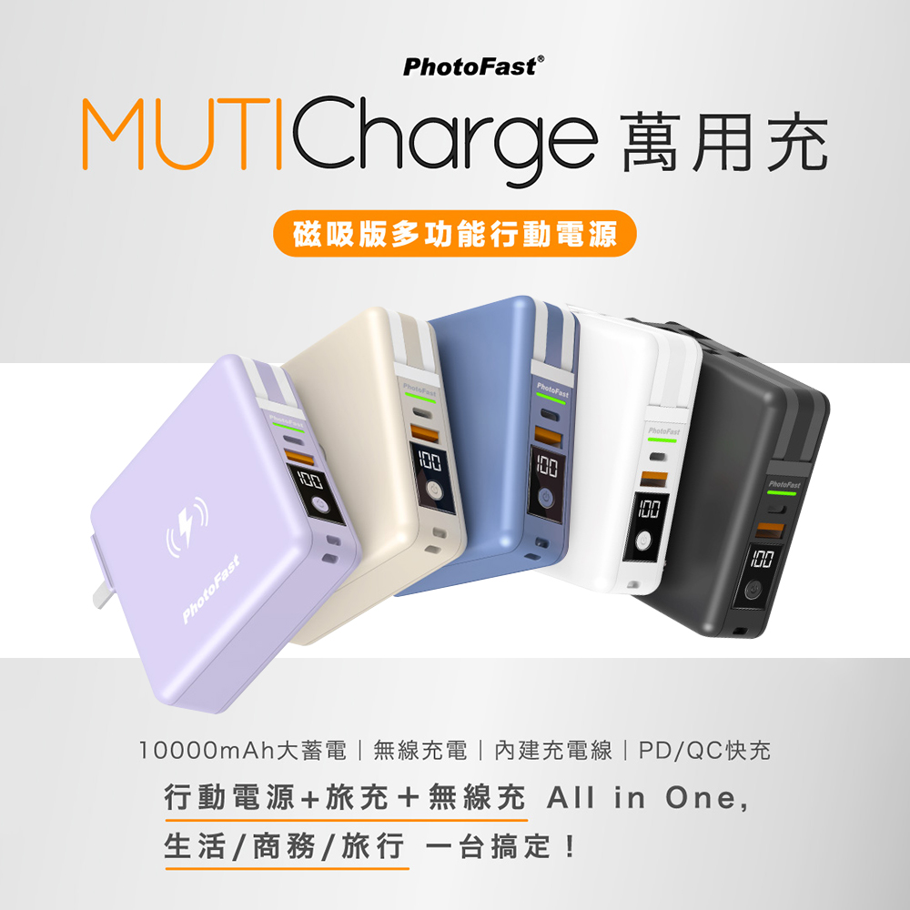 內含:【Photofast】多功能五合一行動電源(萬用充)磁吸充電 MutiCharge 10000mAh